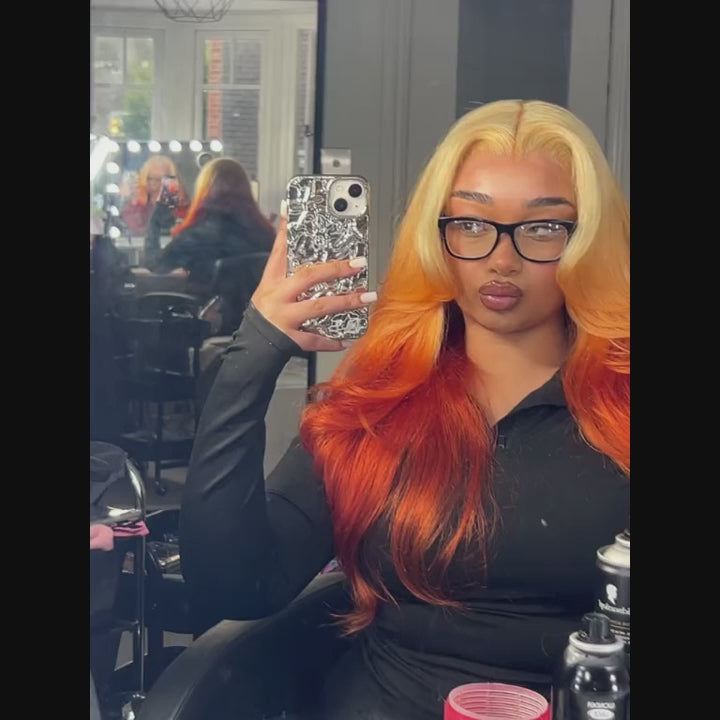 Fast Shipping | Pre Plucked Body Wave 613 Blonde Ombre Highlight Ginger Orange Lace Front Human Hair Wigs