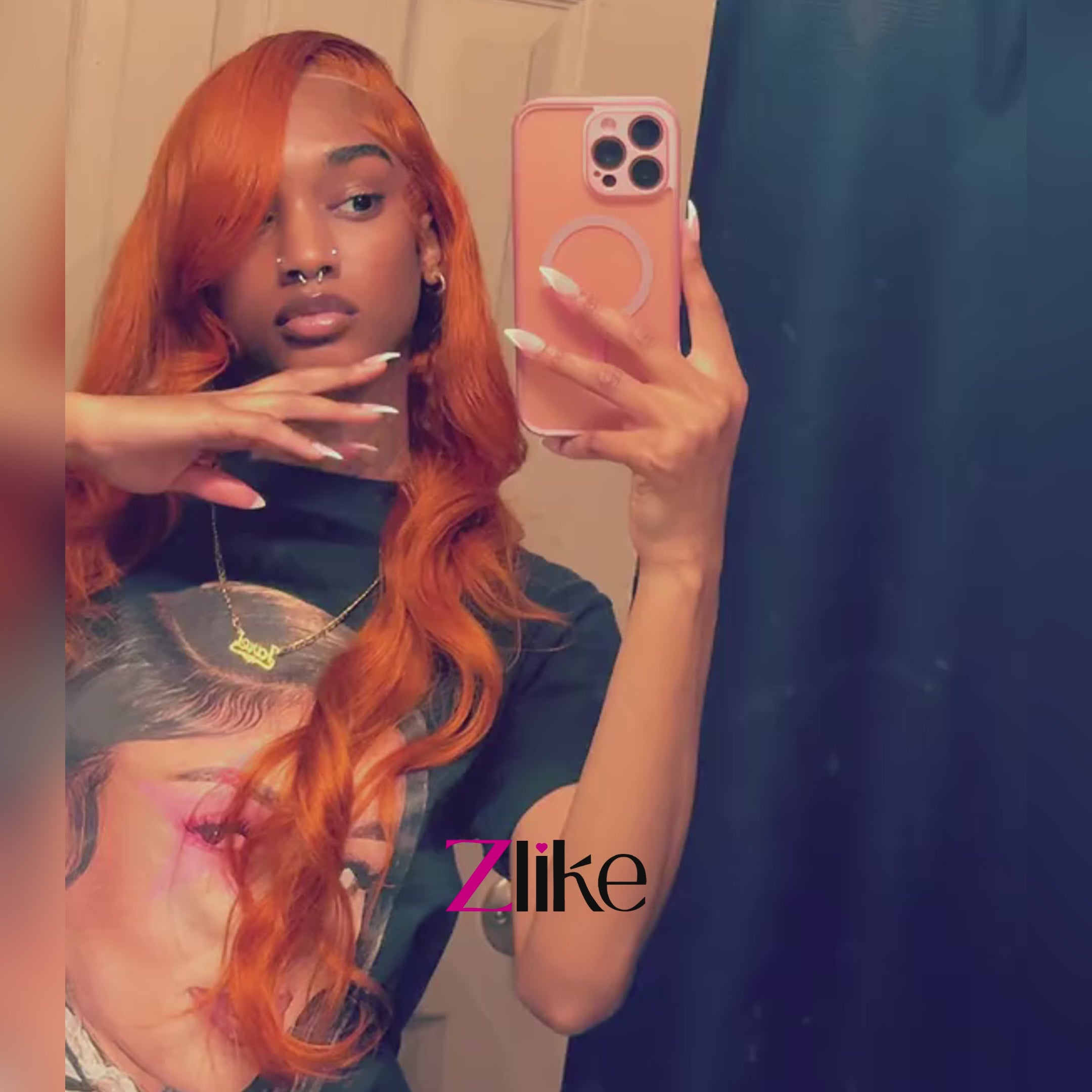 350 Ginger Orange Body Wave Wig Transparent Lace Front Wig High Density Human Hair Wigs
