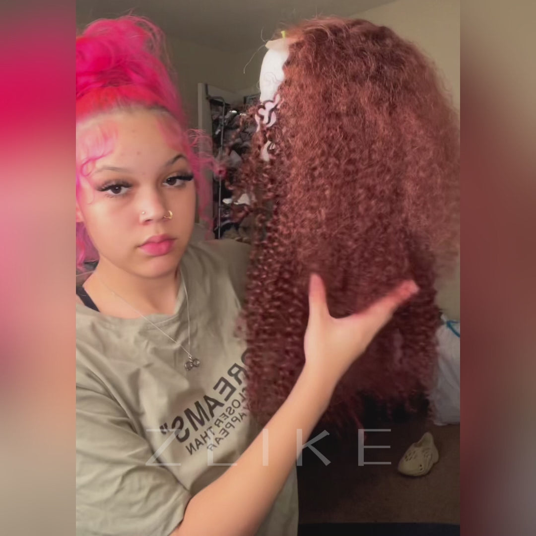 #33 Reddish Brown Kinky Curly Lace Closure Wig High Density Human Hair Wigs With Baby Hair