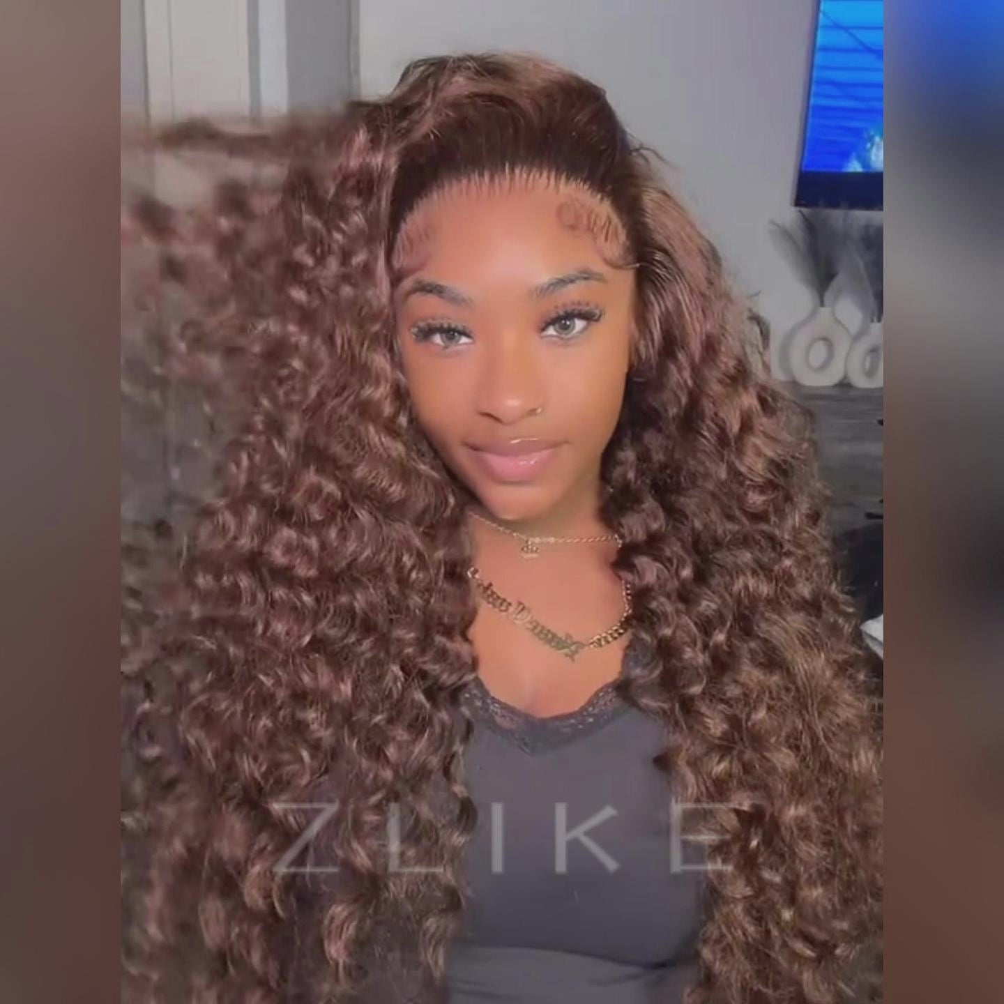 Zlike 300% Density Chocolate Brown Loose Deep Wigs Virgin Human Hair Transparent Lace Lace Front Wigs Super Double Drawn