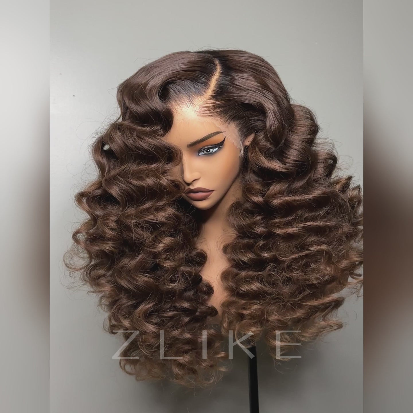 Zlike Wand Curl Chocolate Brown Wigs 300% Density Virgin Human Hair Wigs Transparent Lace Super Double Drawn With Dark Roots
