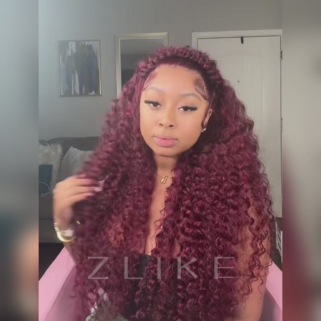 Clearance Sale | 99J Burgundy Red Colored Deep Wave 100% Human Hair Transparent Lace Front Wigs