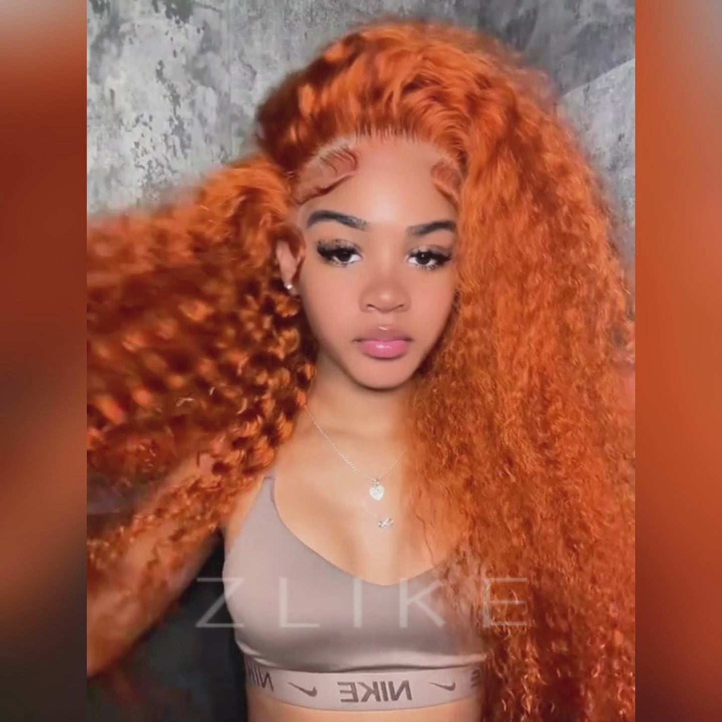 Flash Sale | Ginger Orange #350 Deep Wave Wigs Transparent Lace Front Wigs 100% Virgin Human Hair