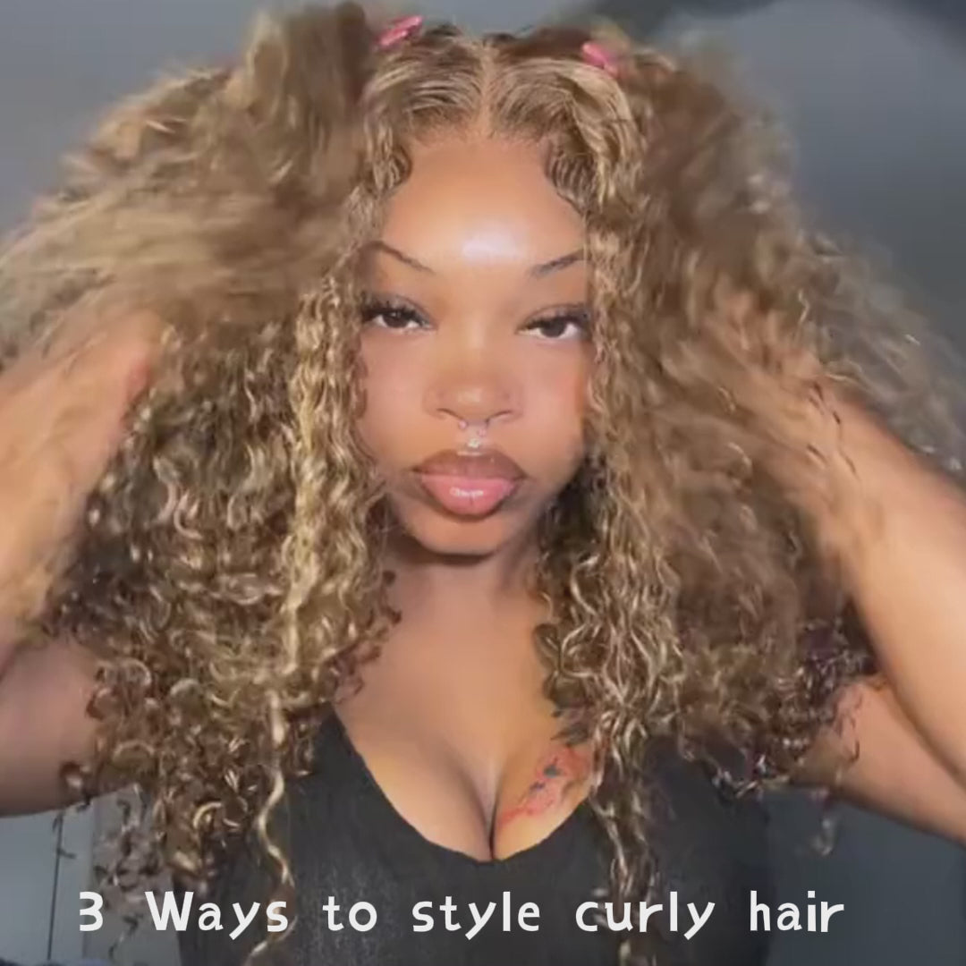Honey Blonde Highlights #4/27 Colored Curly Transparent Lace 100% Virgin Human Hair Wigs