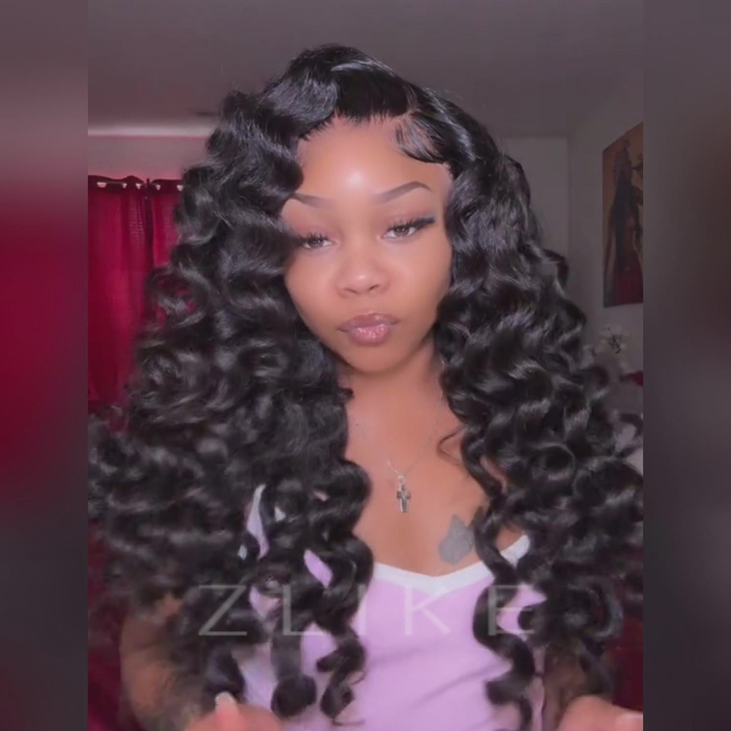Zlike 300% Density Bouncy Loose Curl Wigs 100% Human Hair Transparent Lace Front Wigs For Women