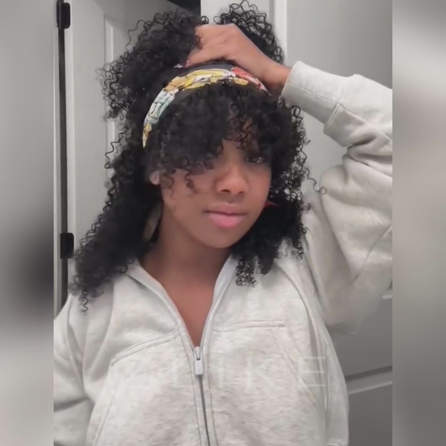 Zlike Breathable Cap Ready To Go Bouncy Jerry Curl Glueless No Lace Curly Wig With Bangs