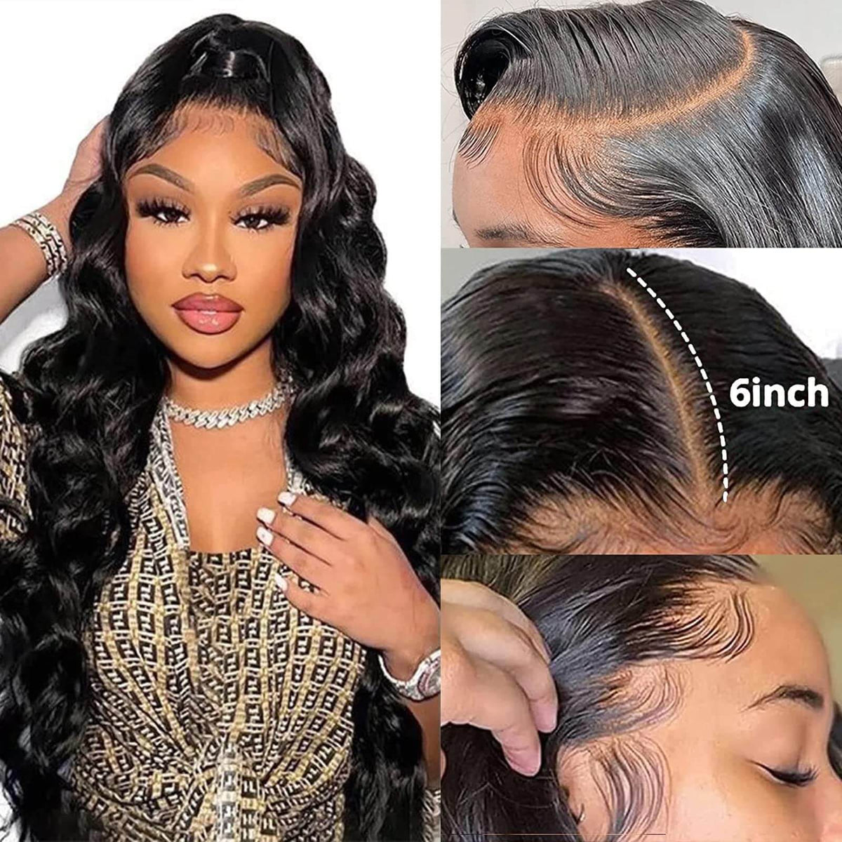 Code: ZL100F | Natural Black Body Wave 13x6 HD Lace Front Human Hair Wigs Free Part 180% Density