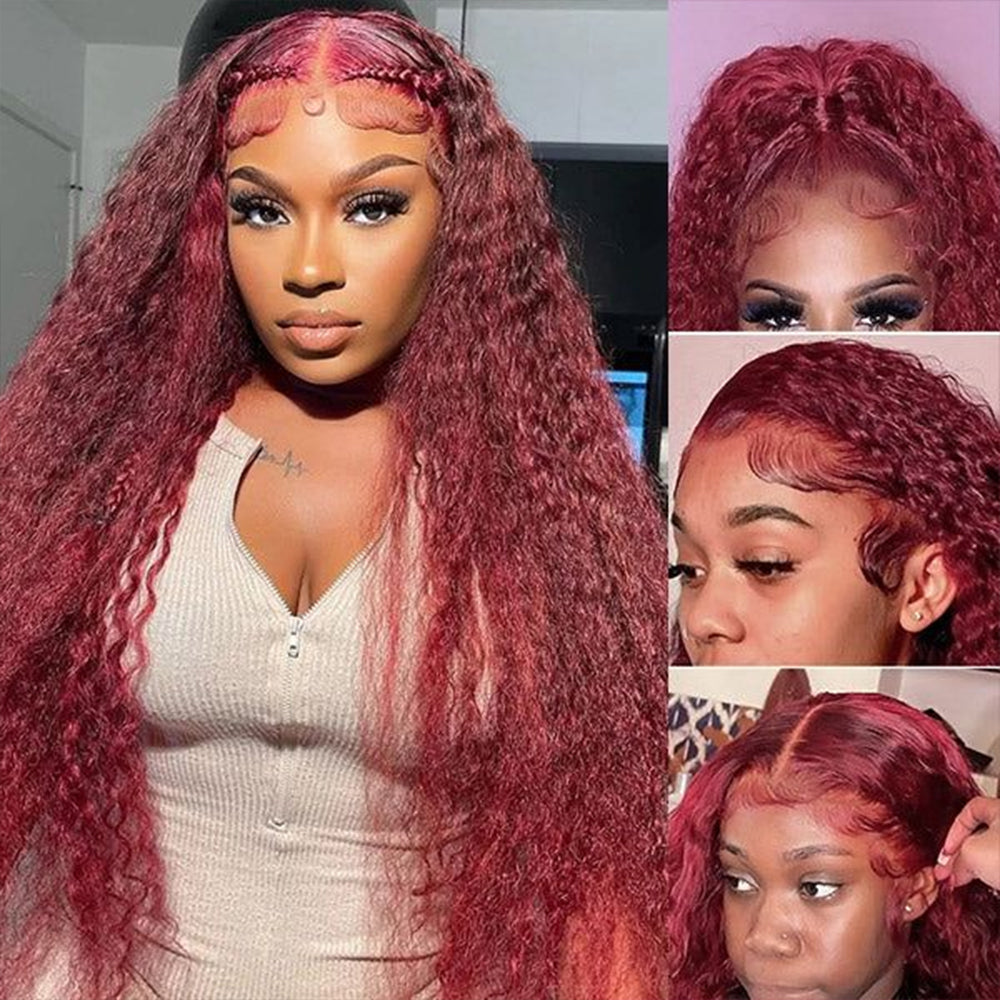Code: ZL100F | Deep Wave 99J Burgundy Wig High Density Lace Front 100% Human Hair Wigs-Zlike