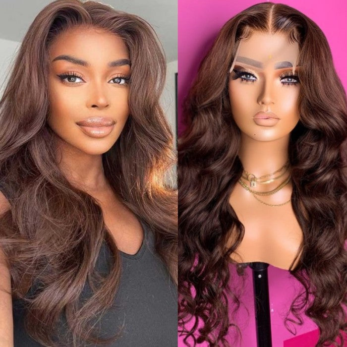 Code: ZL100F | Zlike #4 Chocolate Brown Body Wave Wig Lace Front Human Hair Wigs Natural Hairline