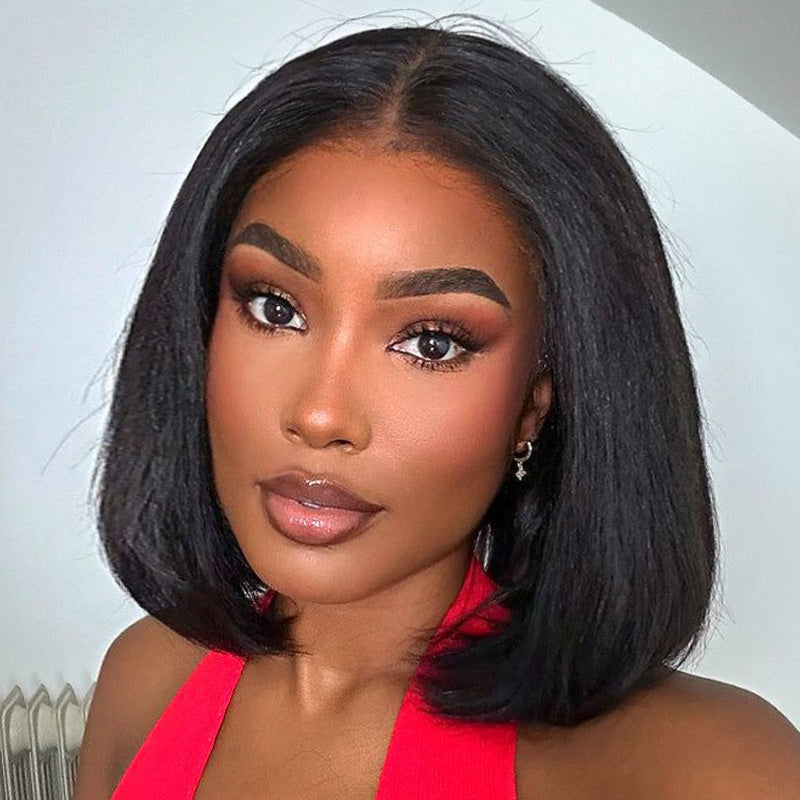 300% Density Bob Lace Wig Pre Cut Straight Human Hair Lace Closure Wigs Bleach Knots