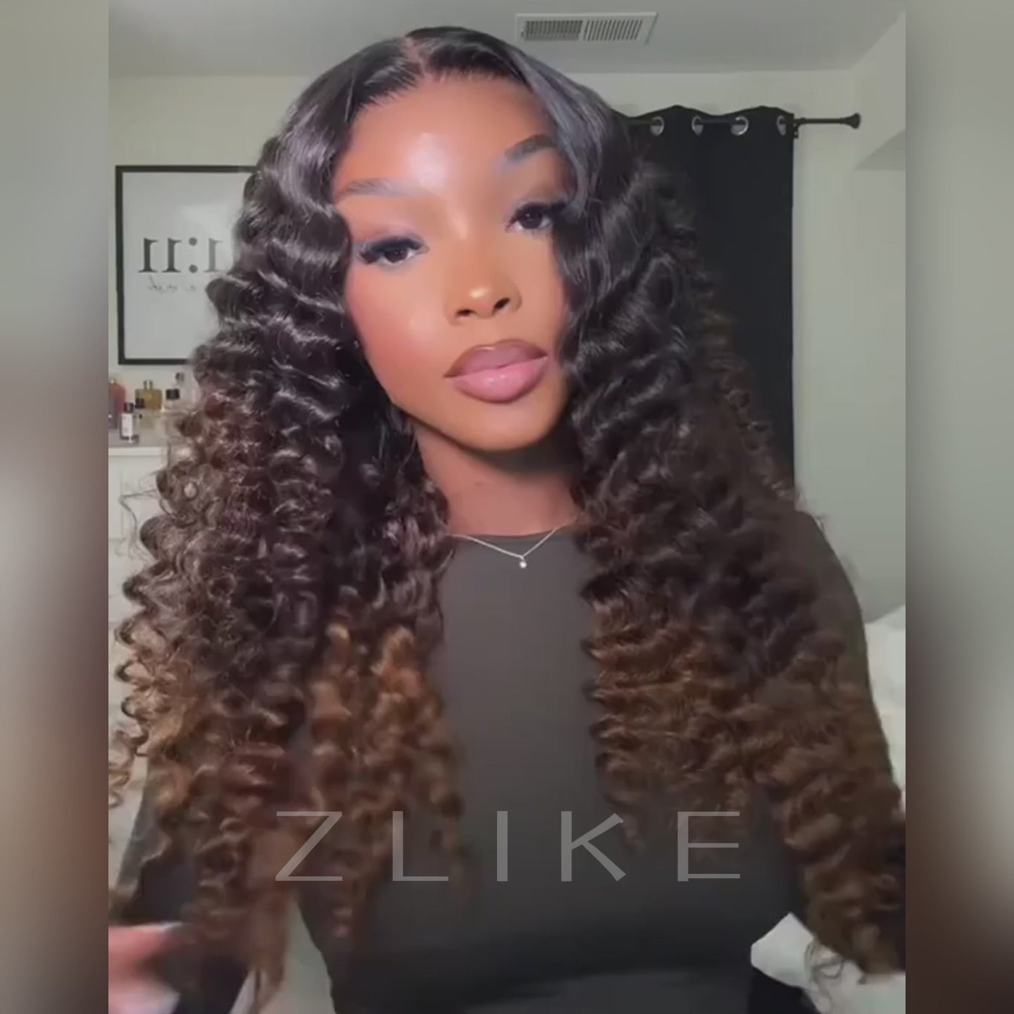Zlike Ombre Brown Light Auburn Loose Deep Wave Wigs Transparent Lace Front Human Hair Wigs