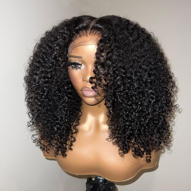 Thick Fluffy Human Hair Lace Closure Wigs Afro Curly Transparent Lace Wig For Black Women