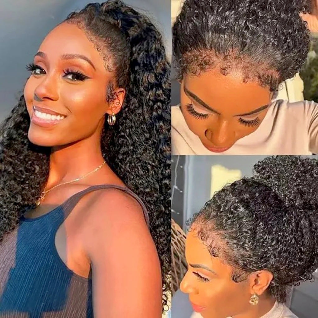 Zlike 4C Curly Edge 300% Density Human Hair Wigs Water Wave Pre Cut Glueless Invisi-Band 360 Lace Frontal Wigs