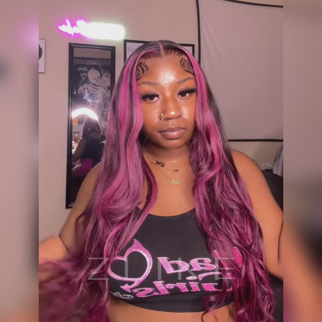 Purple Pink Highlight Mix Colored Lace Front Closure 100% Virgin Human Hair Wigs