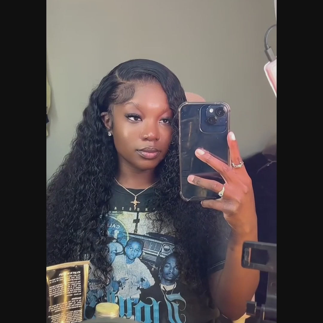 Fast Shipping | Natural Black Water Wave Transparent Lace Front Wig Pre Plucked 100% Human Hair Wigs