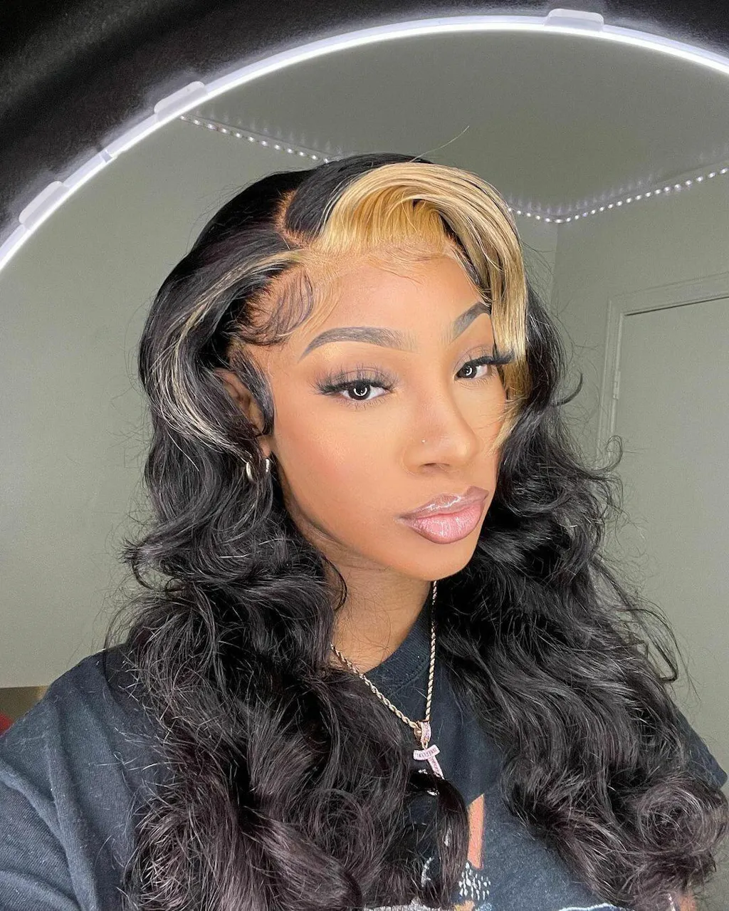 #1B/613 Highlight Blonde Skunk Stripe Body Wave Lace Front Human Hair Wigs-Zlike