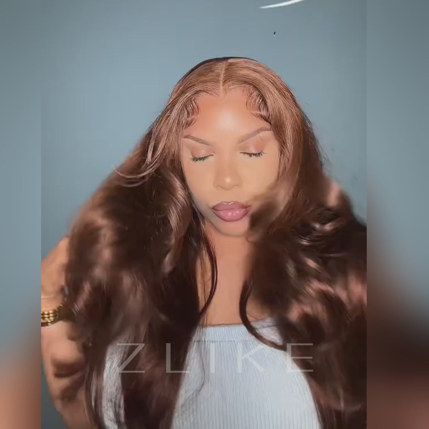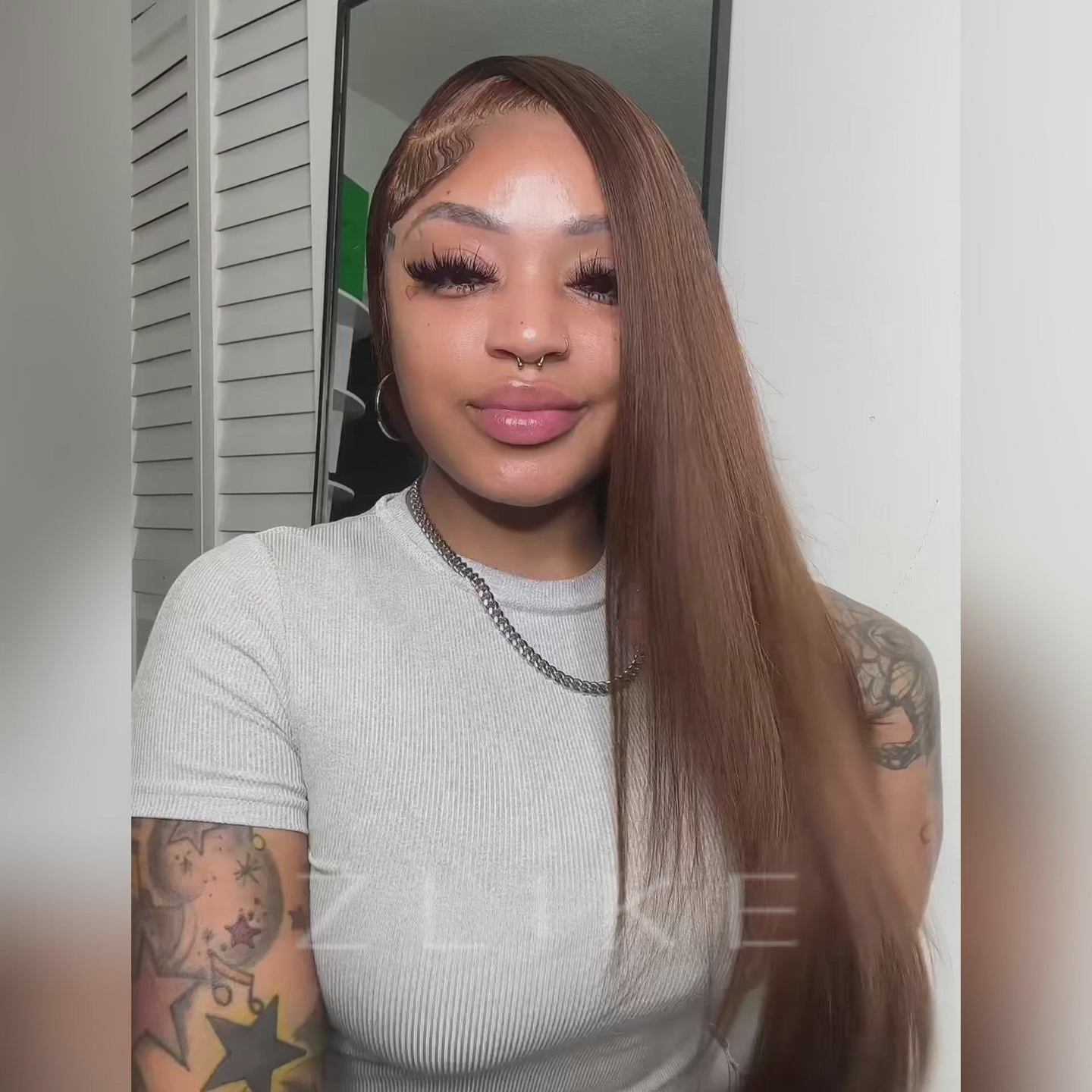 Zlike 200% Density #4 Chocolate Brown Straight Body Wave 13x4 Lace Front Wigs Pre Plucked Human Hair Wigs