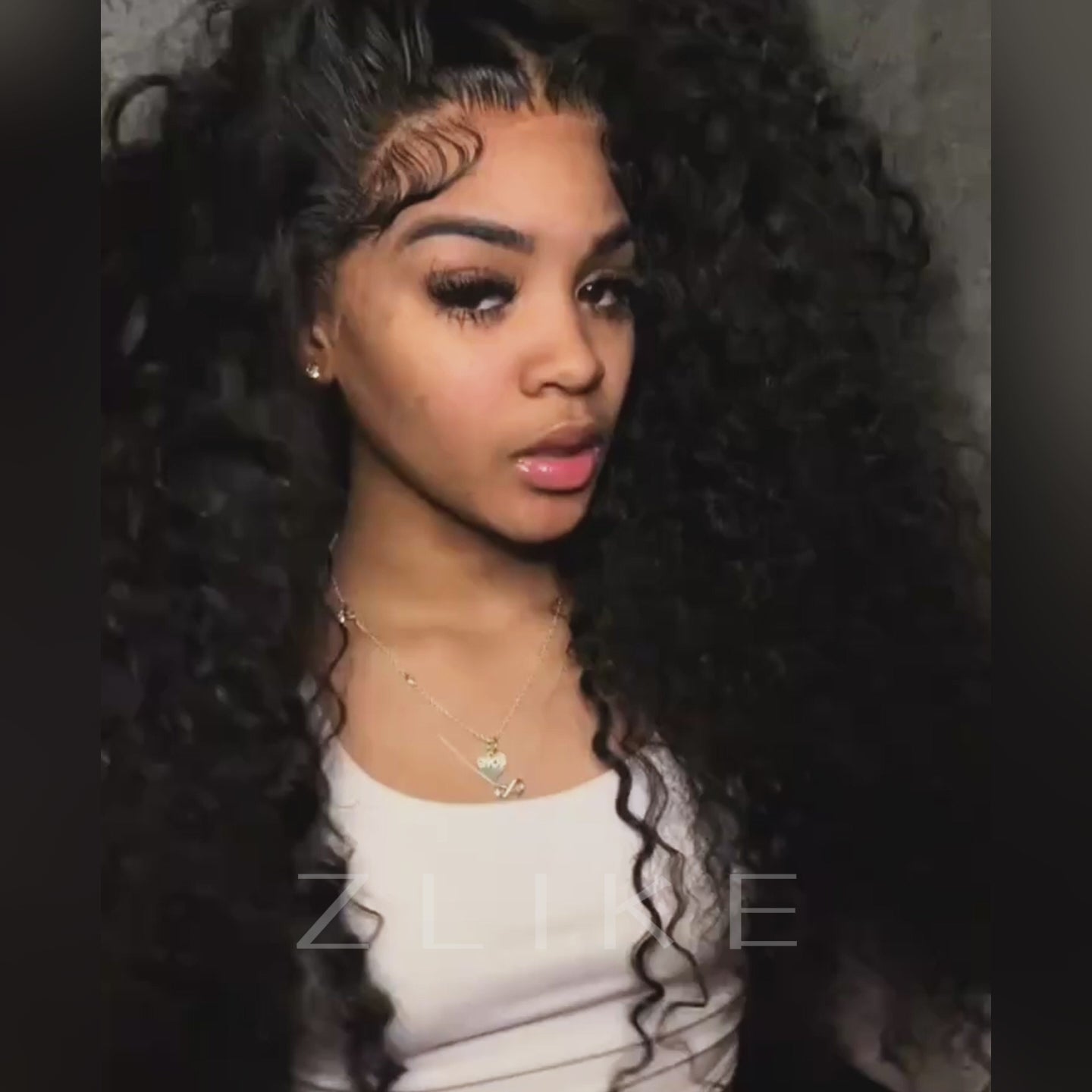 300% Density Deep Curly Transparent Lace Front Wigs Thick Fluffy Virgin Human Hair Wigs