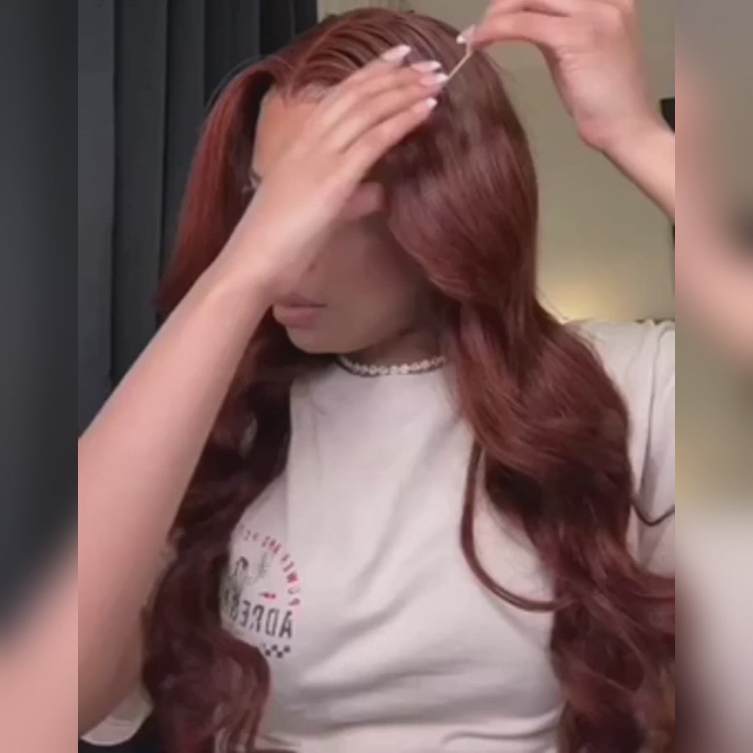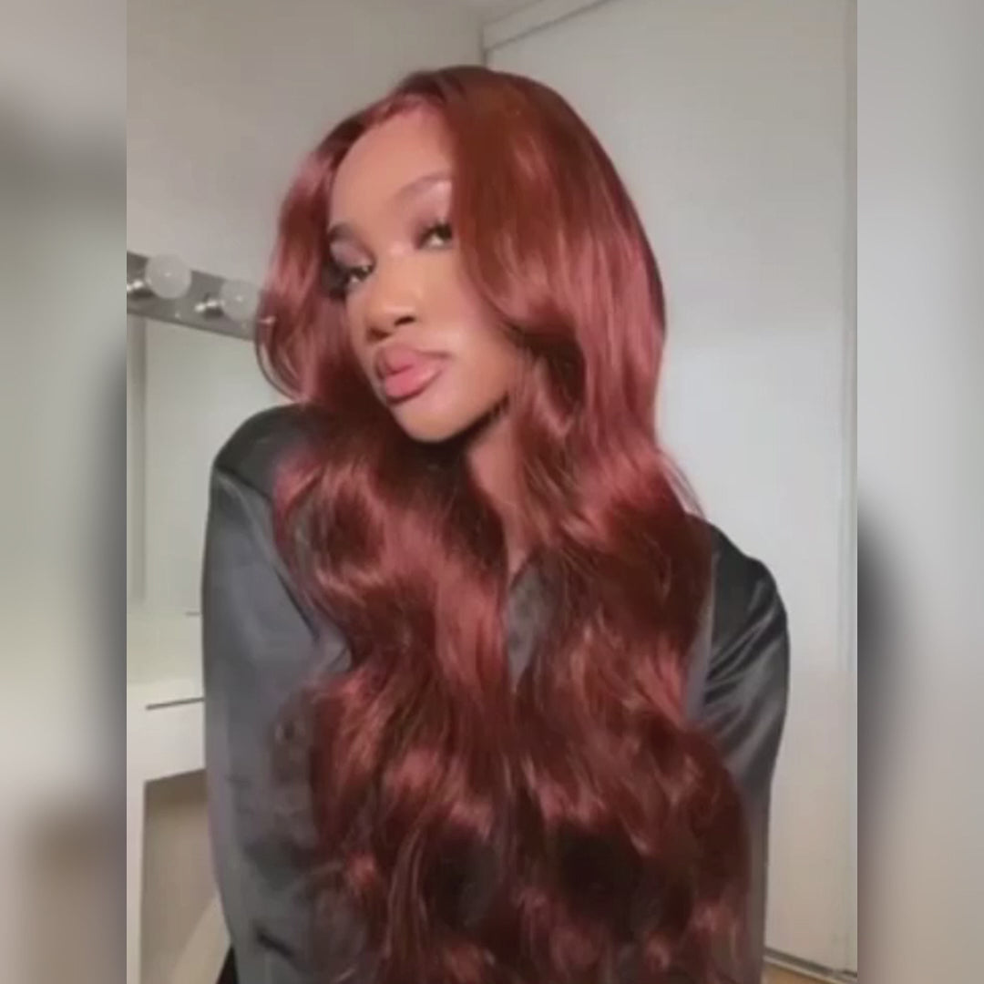 #33 Reddish Brown Colored Body Wave 180% Density 13x4 Lace Front Human Hair Wig With Baby Hair