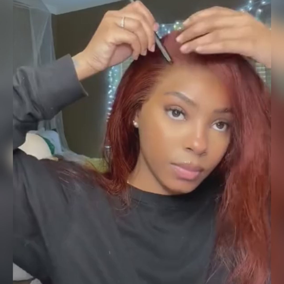 #33 Reddish Brown Glueless Invisi-Band Human Hair Wigs Body Wave Pre Cut 360 Lace Frontal Wig
