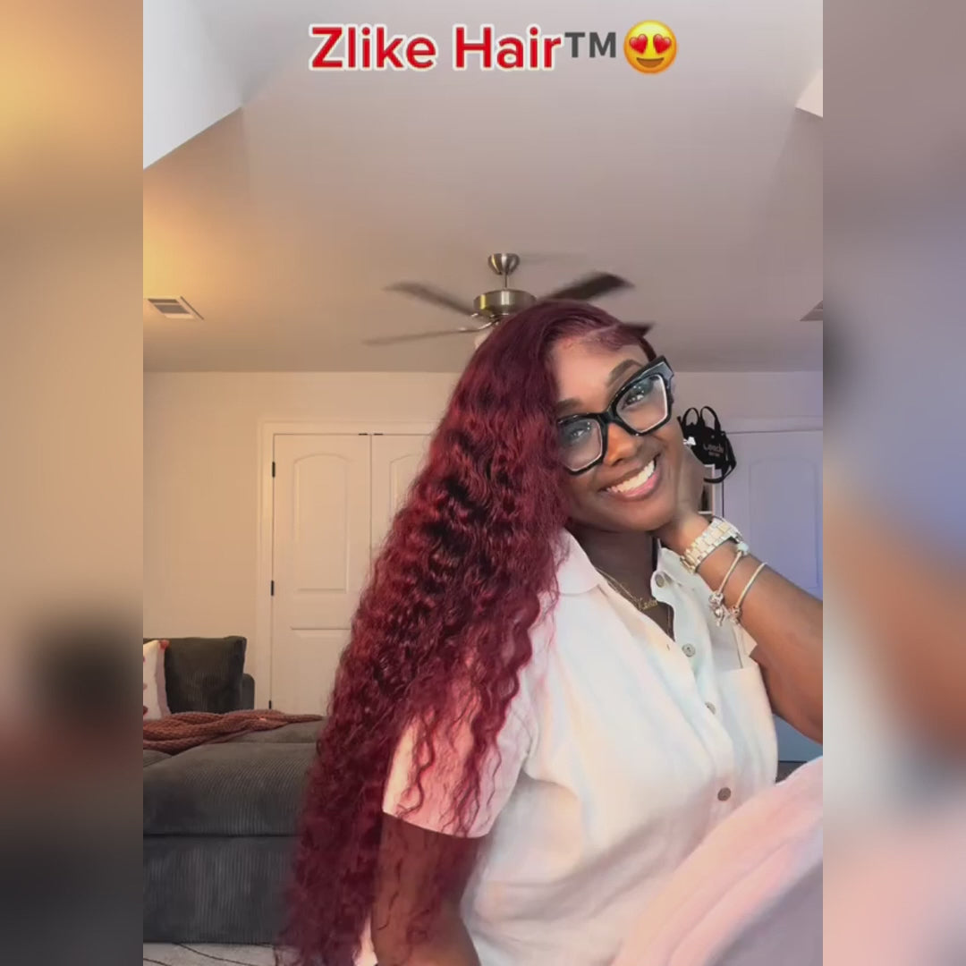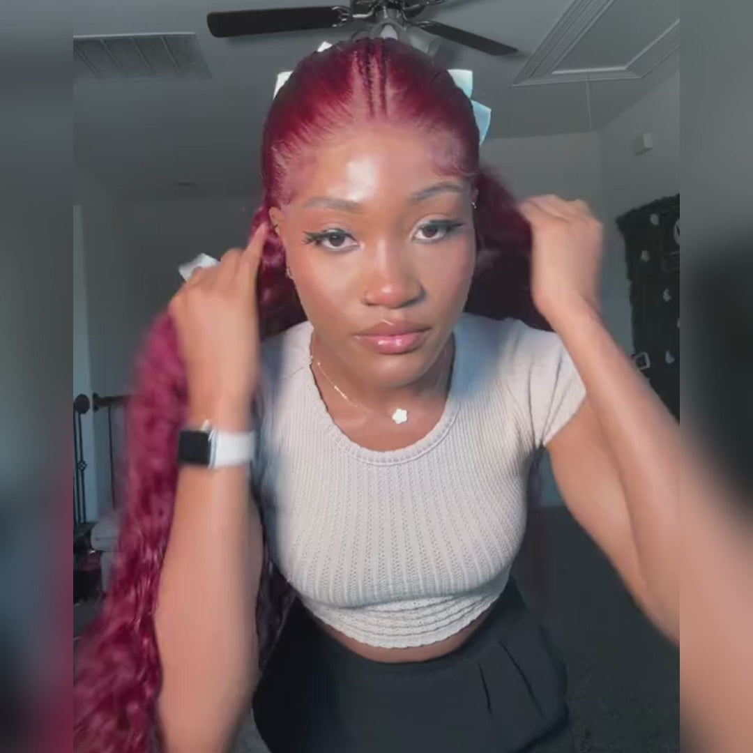 Pre Plucked 99J Burgundy Human Hair Wigs 13x4 Deep Wave Transparent Lace Front Wig With Baby Hair