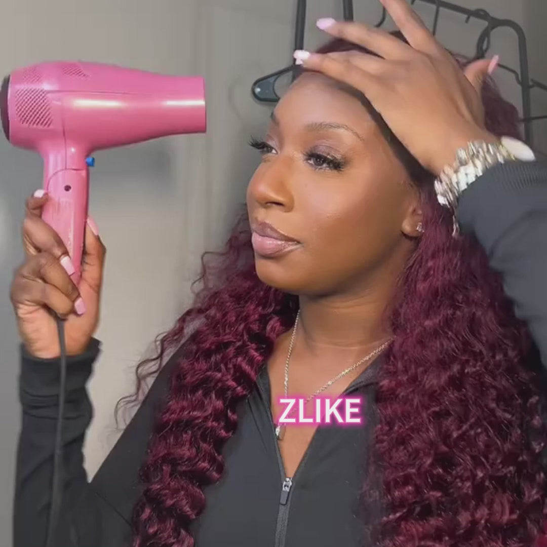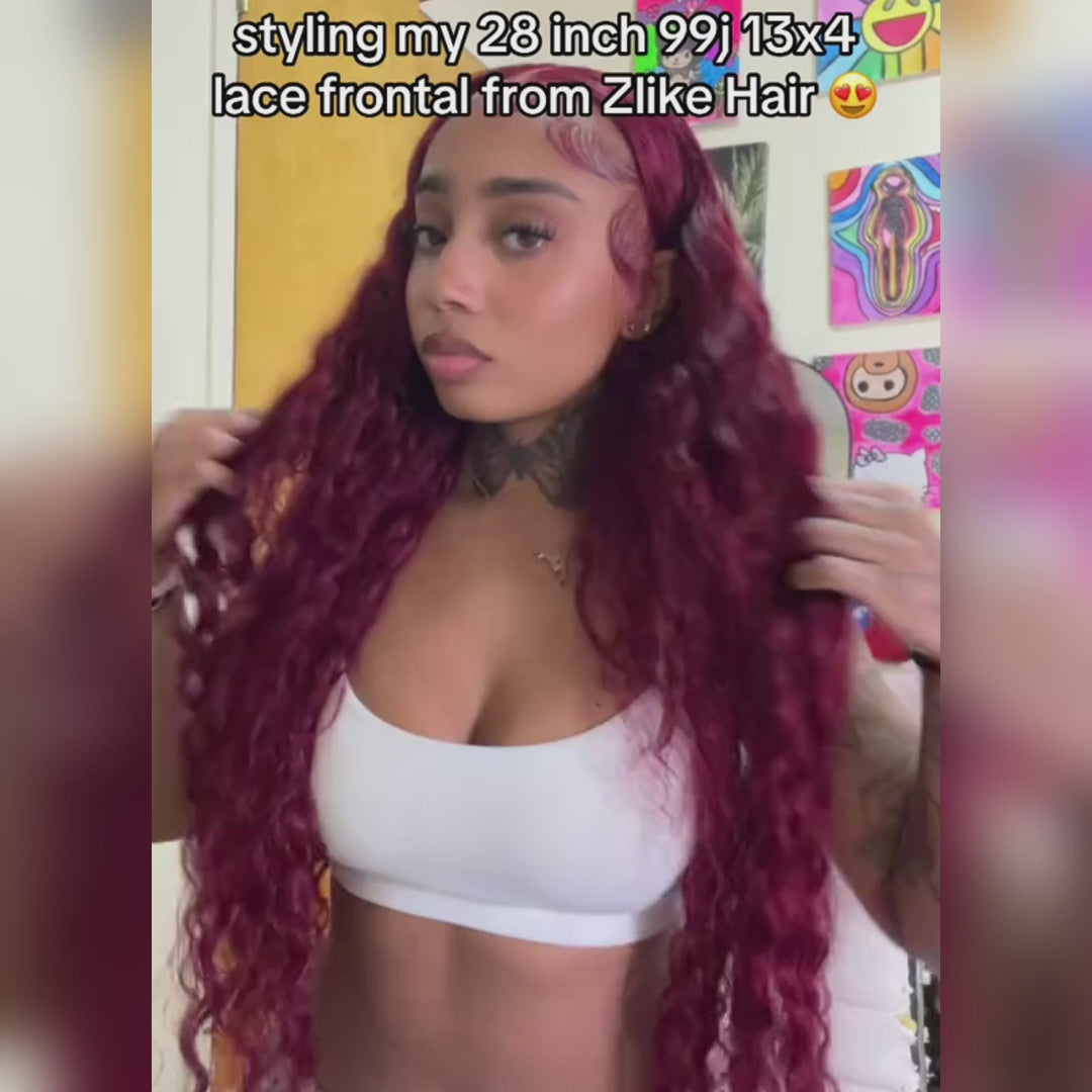 99J Burgundy High Density Deep Wave Wig Lace Front 100% Human Hair Wigs-Zlike