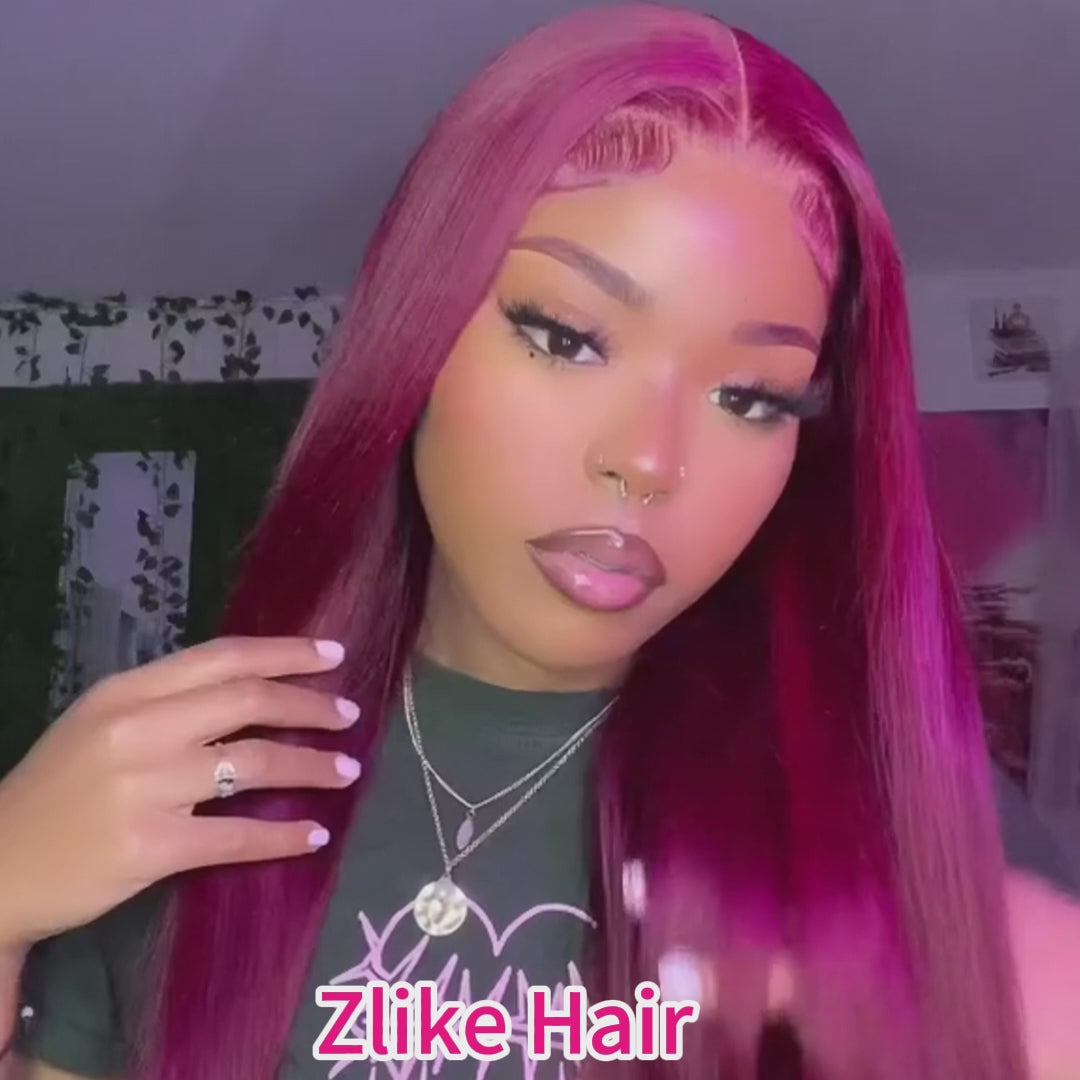 99J Straight Human Hair Wigs Red Colored Transparent Lace Front Wigs With Baby Hair-Zlike