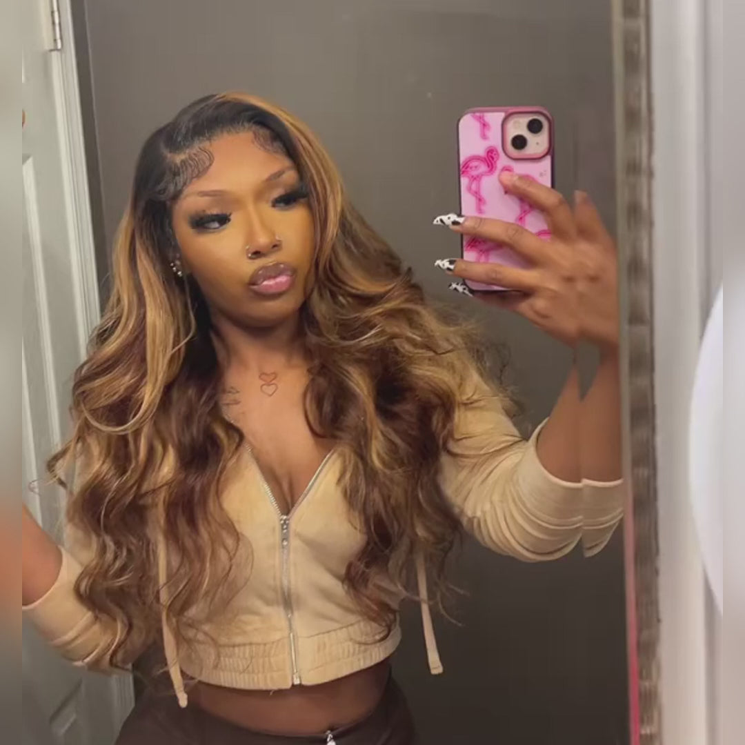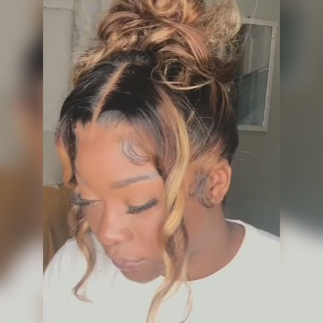 Black Roots Body Wave 4/27 Ombre Highlight Transparent 360 Lace Frontal Human Hair Wigs