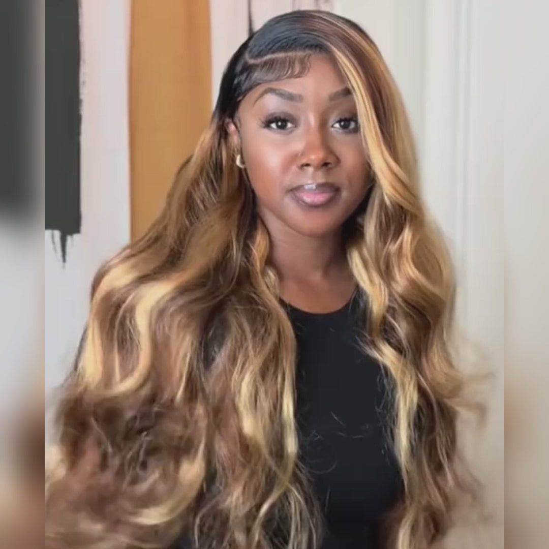 Black Roots Body Wave 4/27 Ombre Highlight Transparent Lace Front Human Hair Wigs