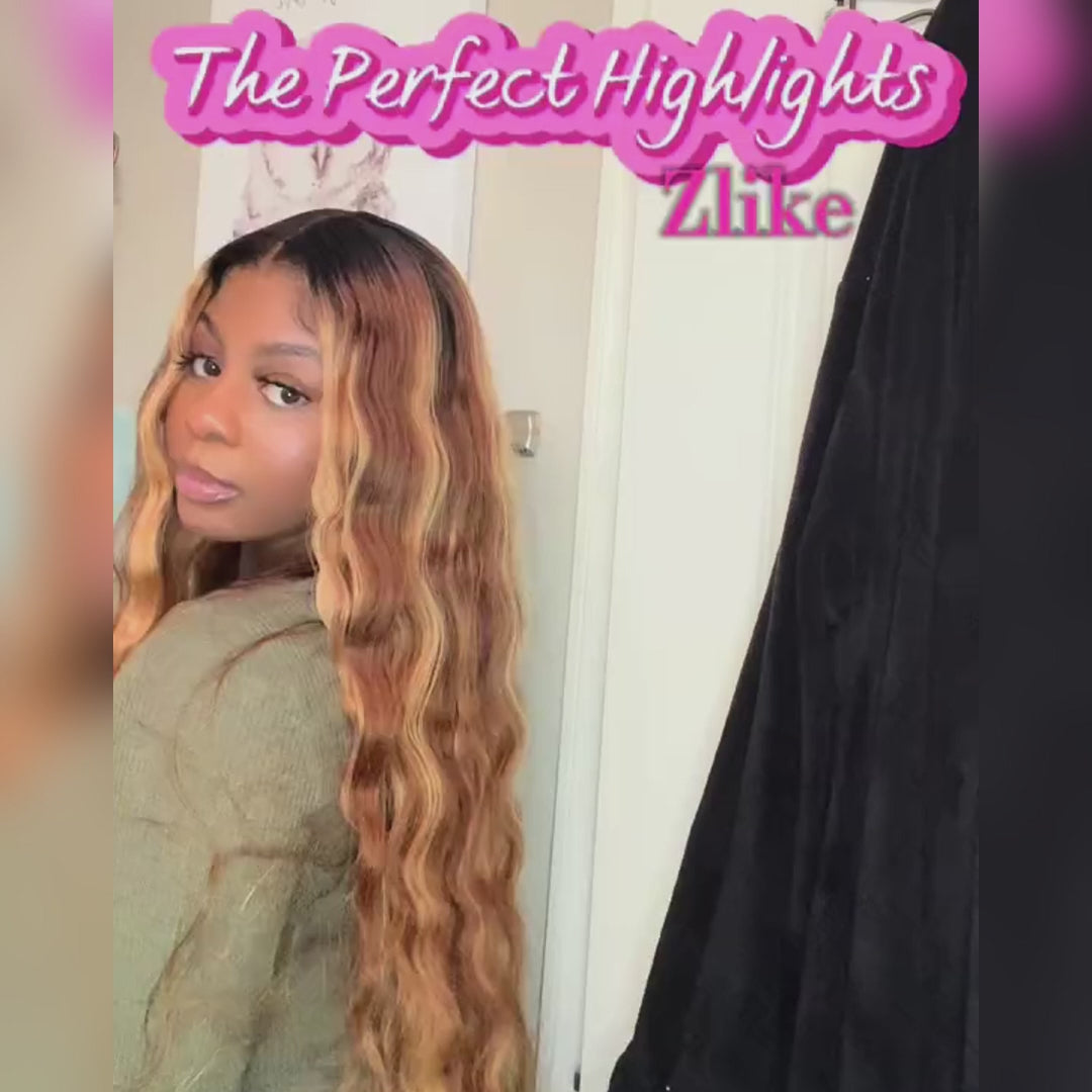 Pre Plucked Body Wave Transparent Lace Front Wig Black Roots 4/27 Ombre Highlight Human Hair Wigs