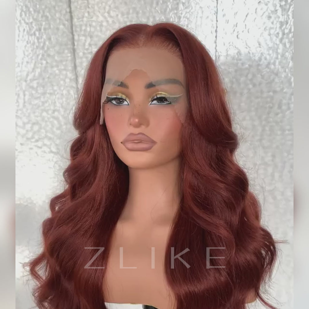 Clearance Sale | #33 Reddish Brown Body Wave Wigs Transparent Lace Front 100% Virgin Human Hair Wigs
