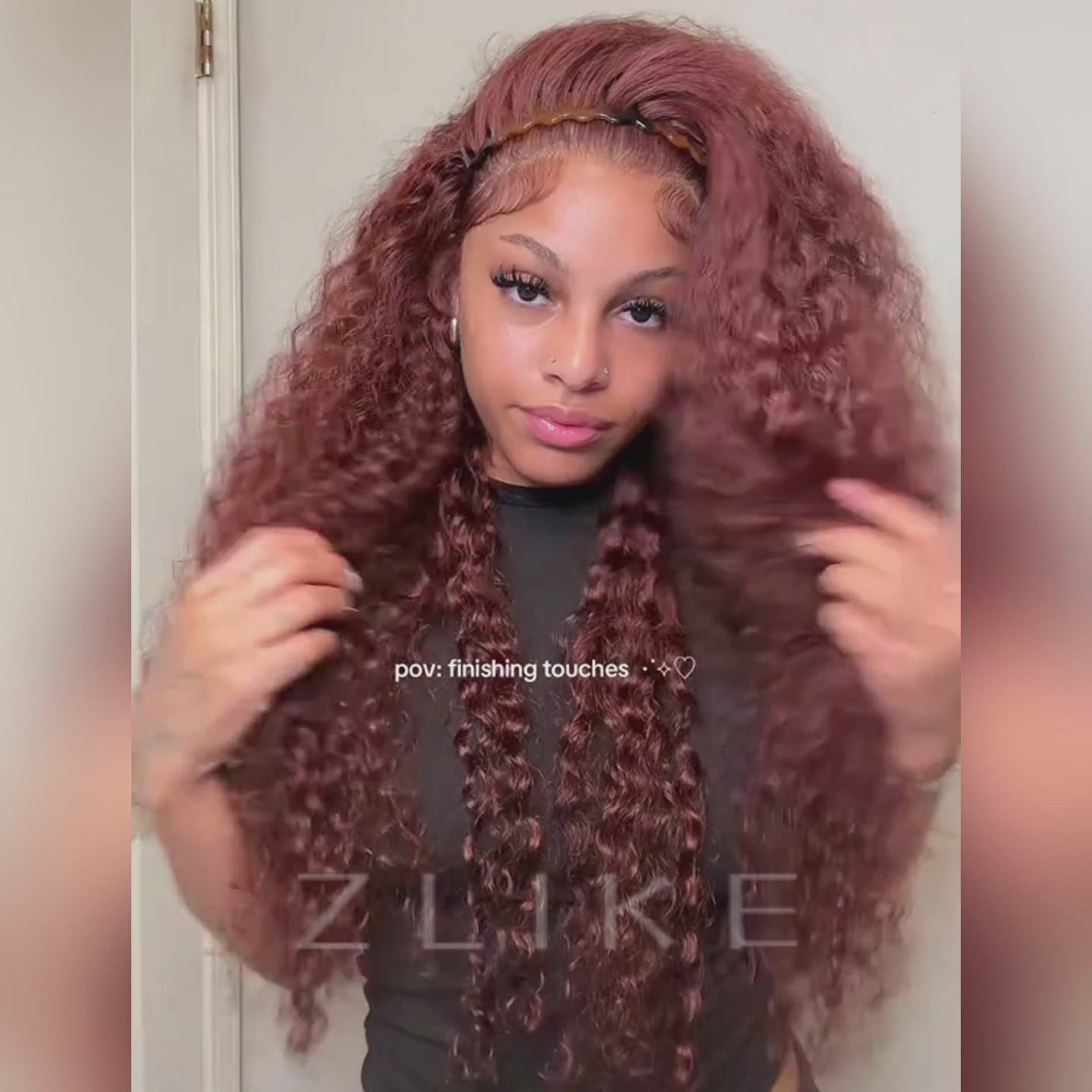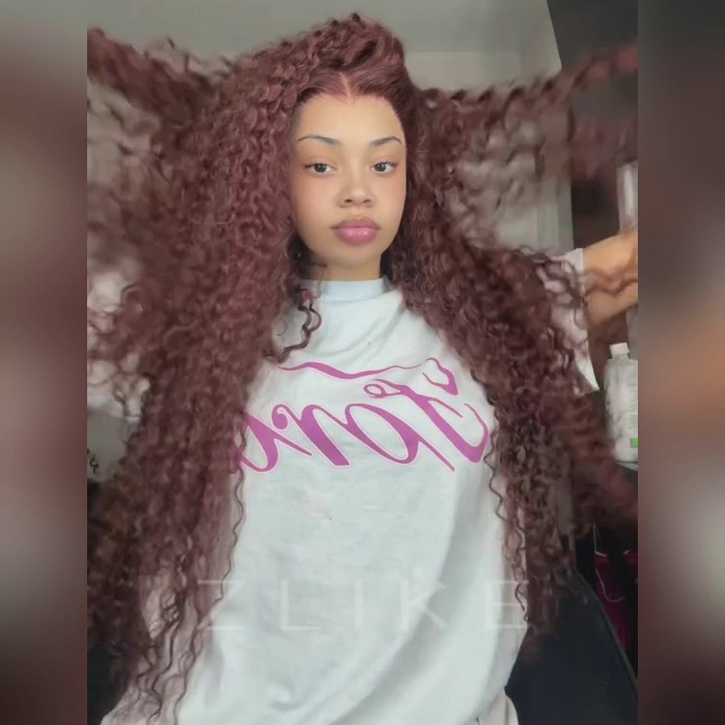 Clearance Sale | #33 Reddish Brown Colored Water Wave 100% Human Hair Transparent Lace Front Wigs