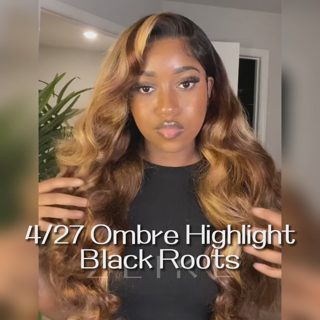 Clearance Sale | Ombre Honey Blonde Highlight With Black Roots 13x6 Lace Front Body Wave Wigs Human Hair Wigs