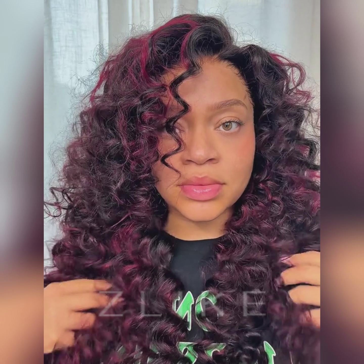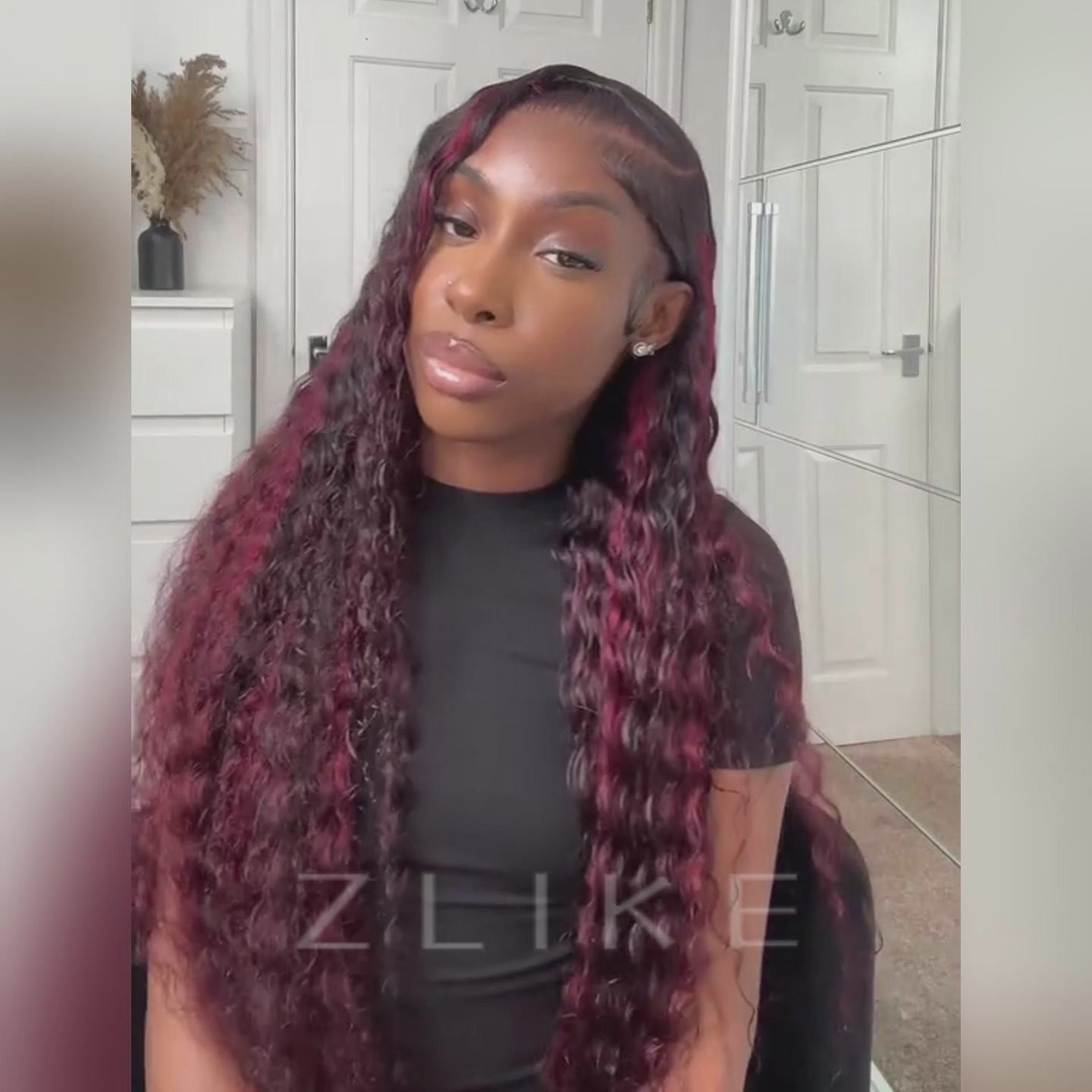 Clearance Sale | 99J Burgundy Kinky Curly Wigs Transparent Lace Front Virgin Human Hair Wigs