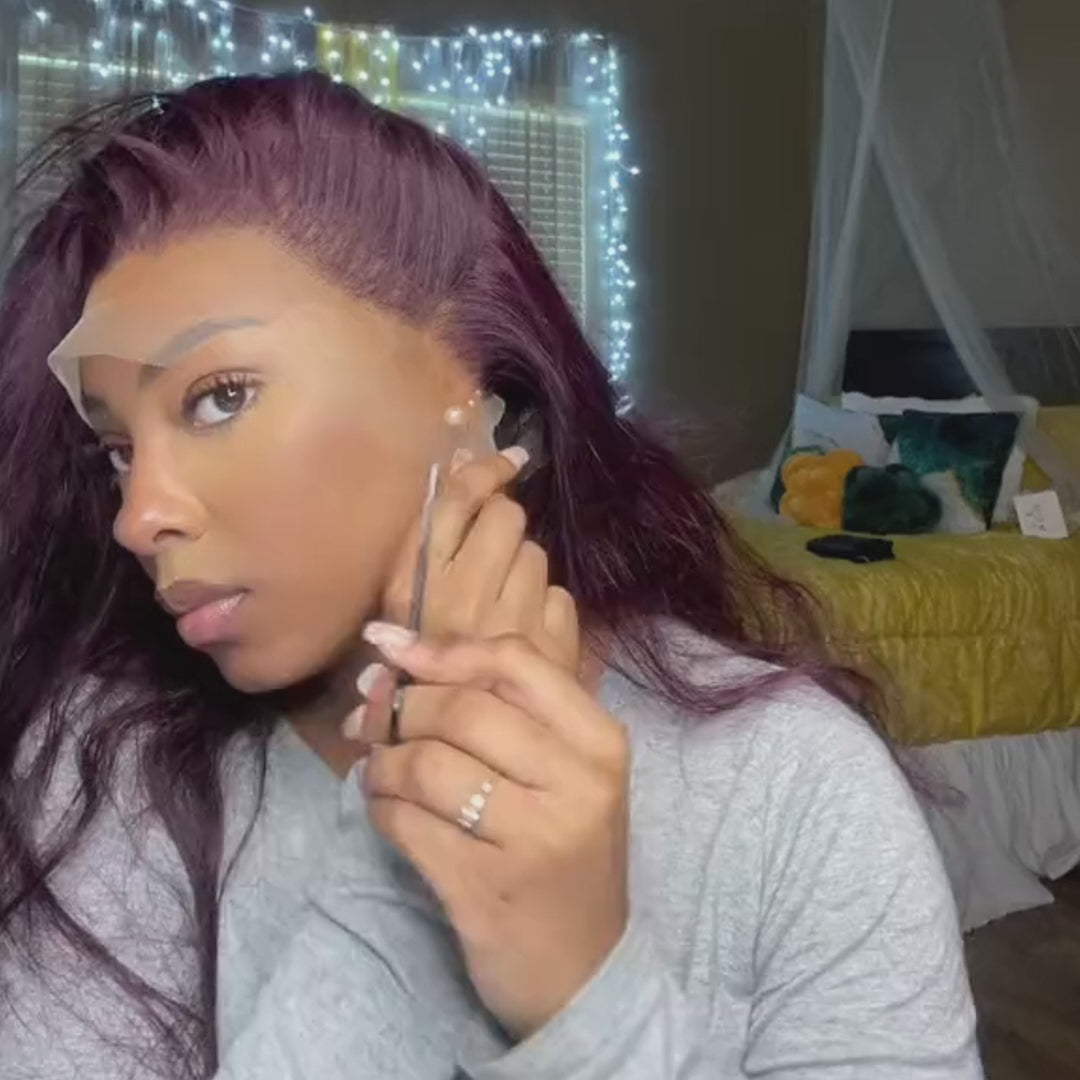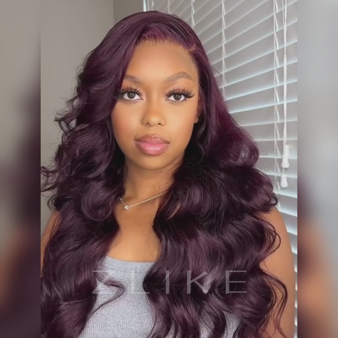 Dark Purple Plum Colored 13x4 Lace Front Wig Body Wave Human Hair Wigs With Baby Hair