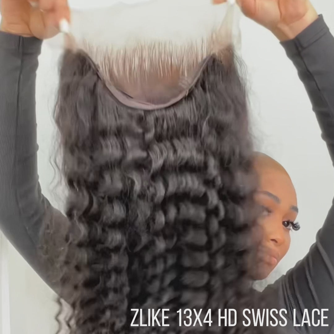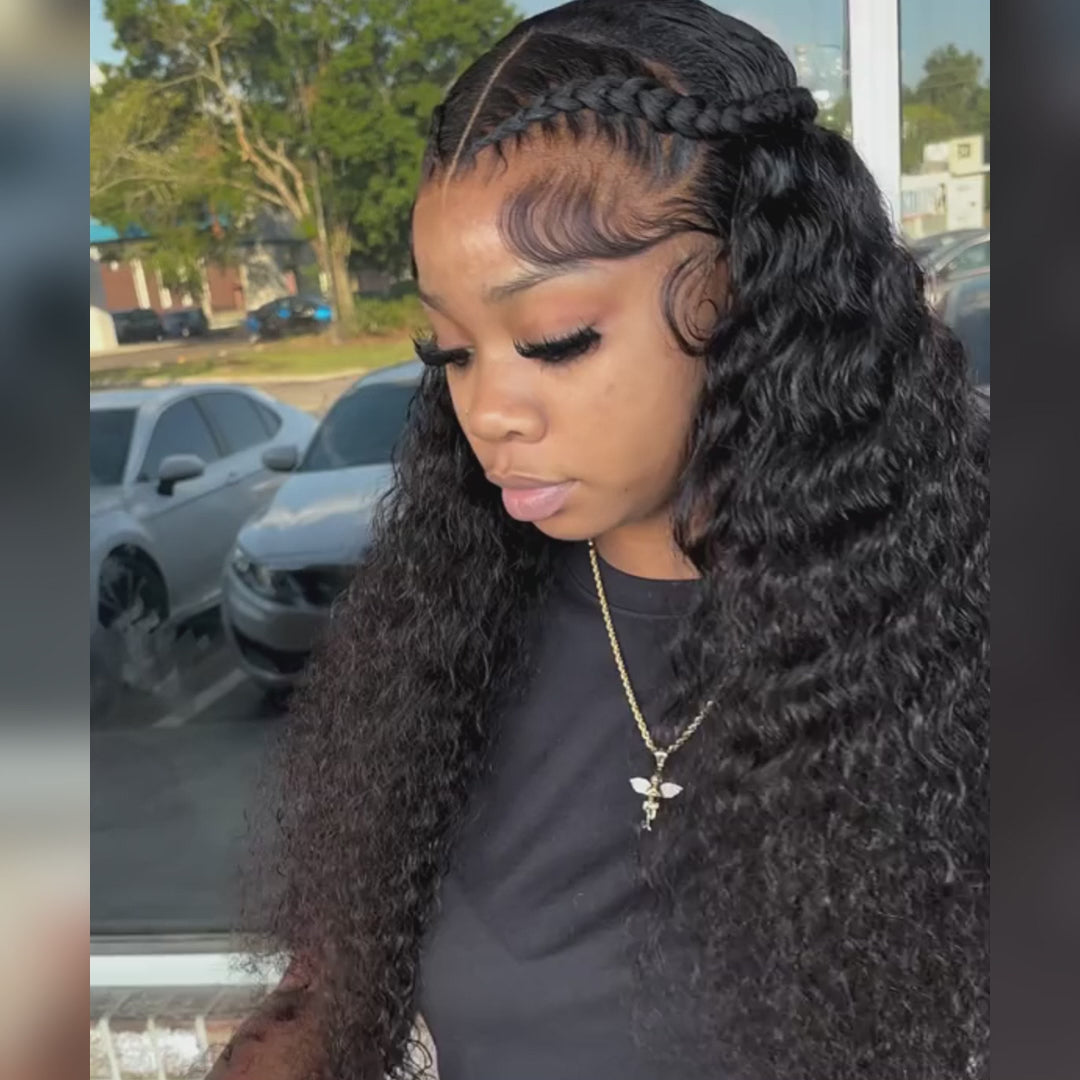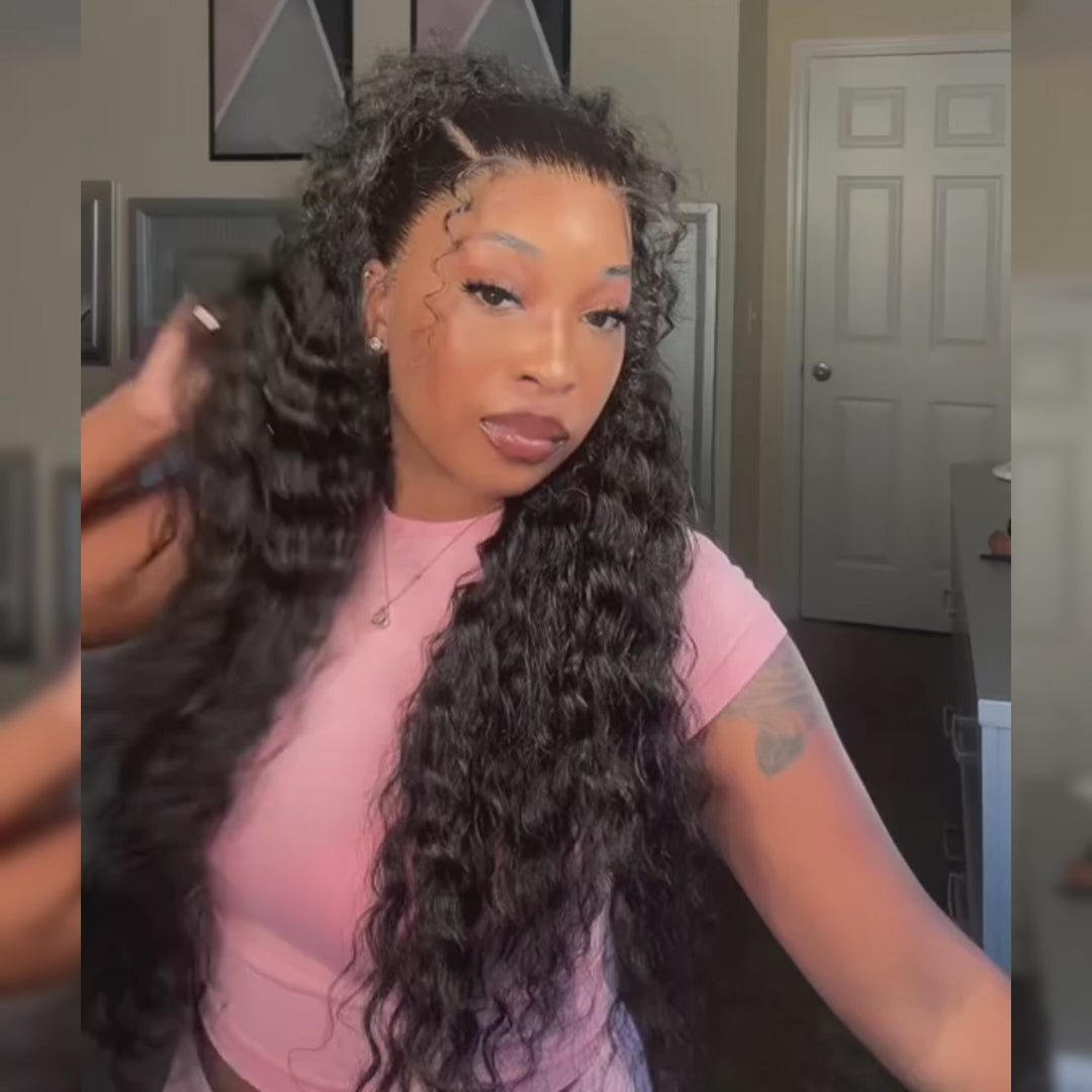 Deep Wave HD Transparent Lace Front Wigs Pre Plucked 100% Human Hair Wigs Natural Hairline