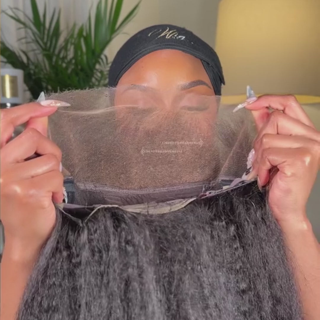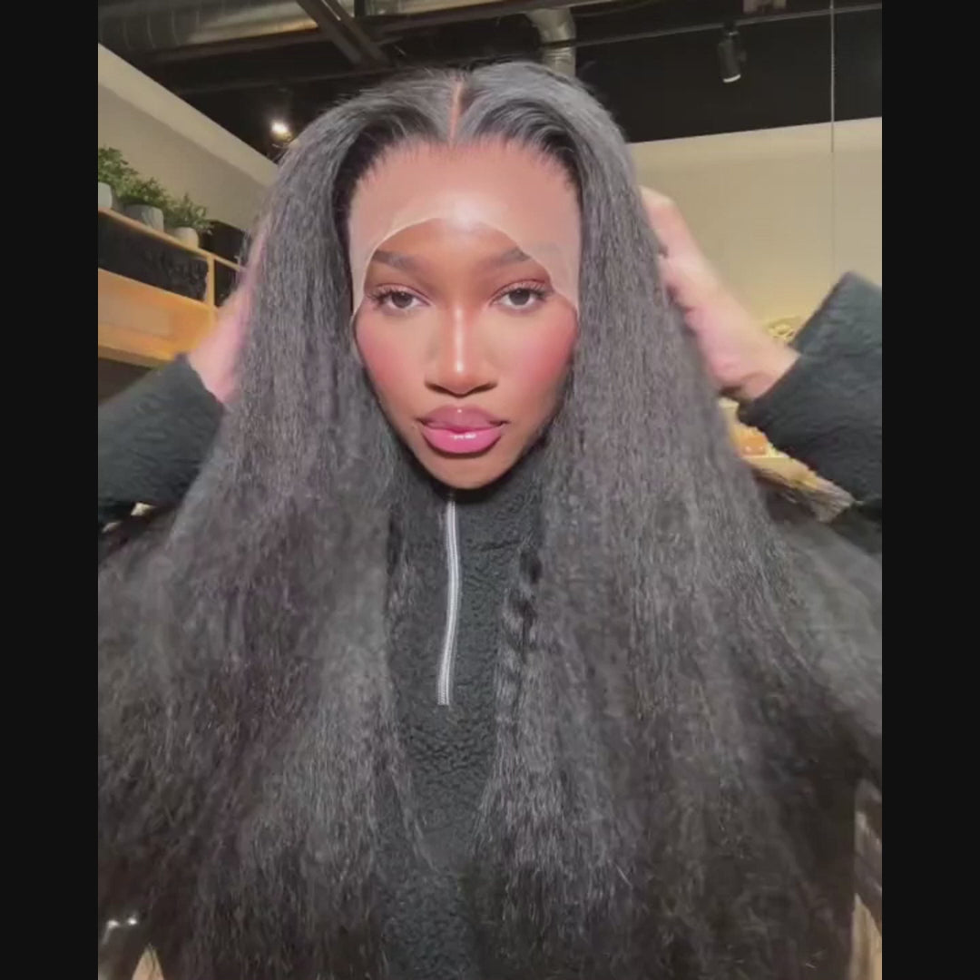Natural Black 13x4 Lace Frontal Wigs Yaki Straight Human Hair Wigs-Zlike