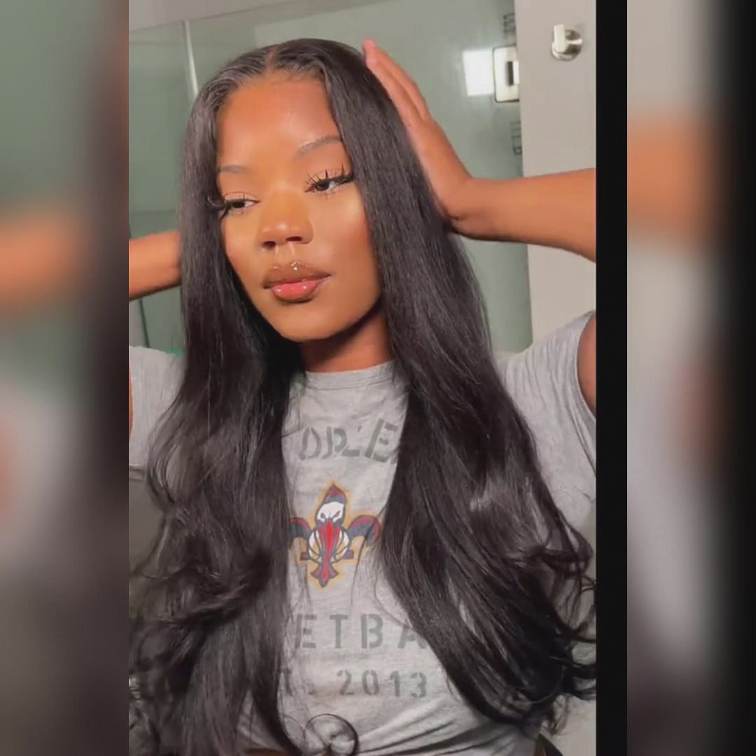 Yaki Straight Pre Cut Wear Go Lace Closure Wigs Glueless Human Hair Wigs With Baby Hair
