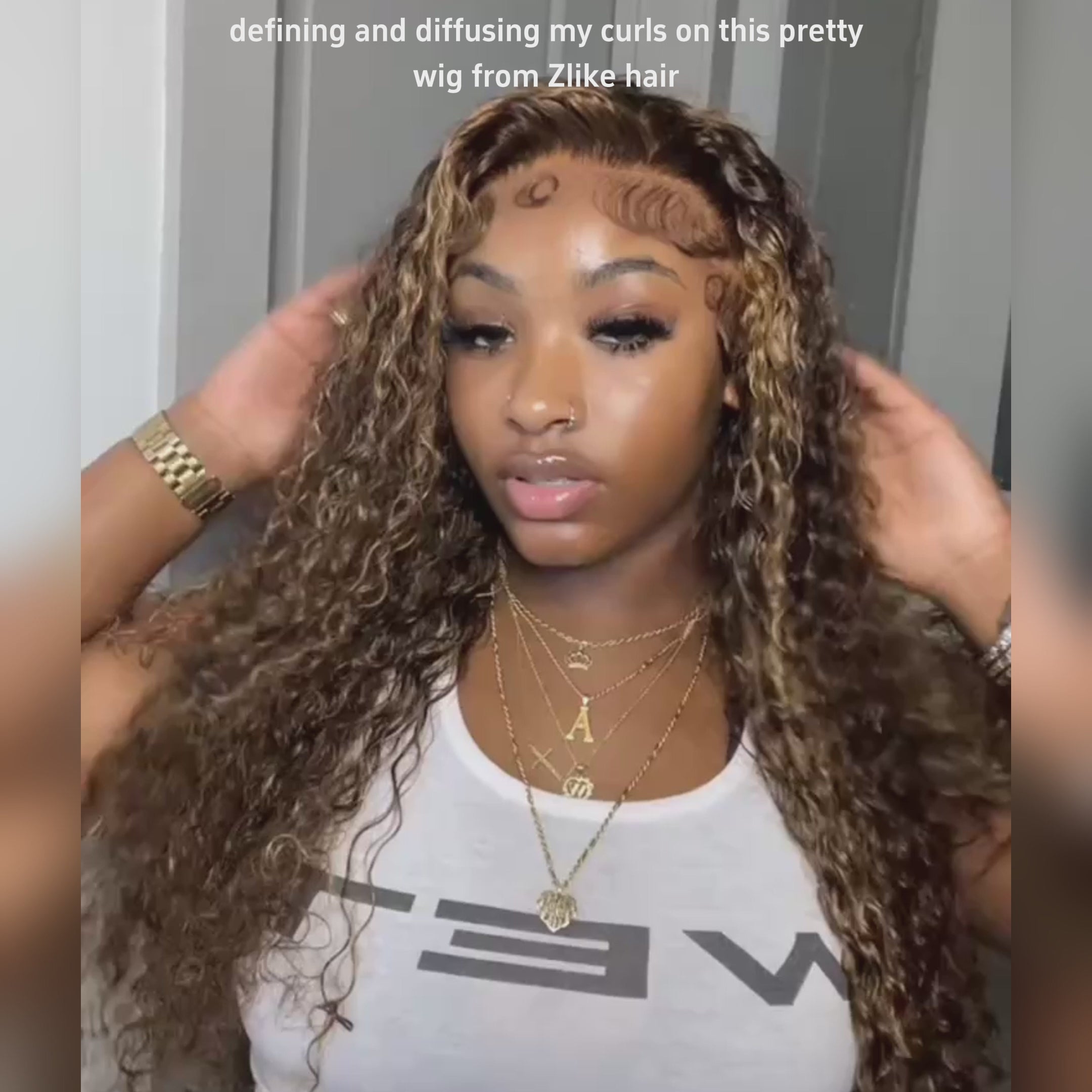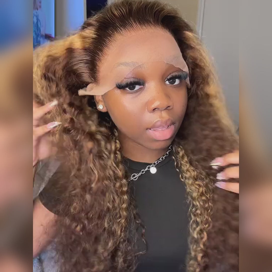 Ombre Highlight Piano Color 13x4 Lace Wig Water Wave Brown Golden Human Hair Wig | Flash Sale