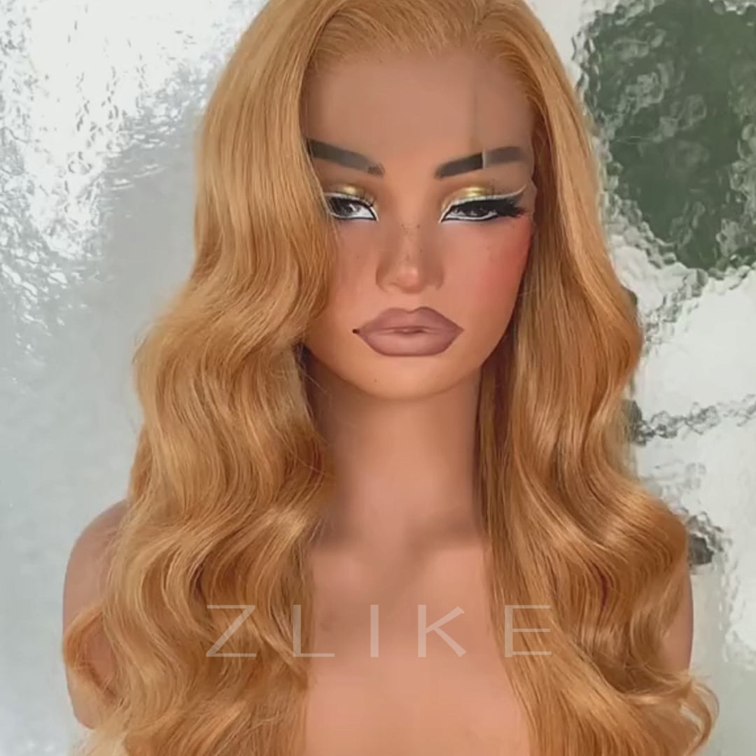 Honey Blonde #27 Body Wave Human Hair Wigs Pre Plucked Lace Front Wig-Zlike