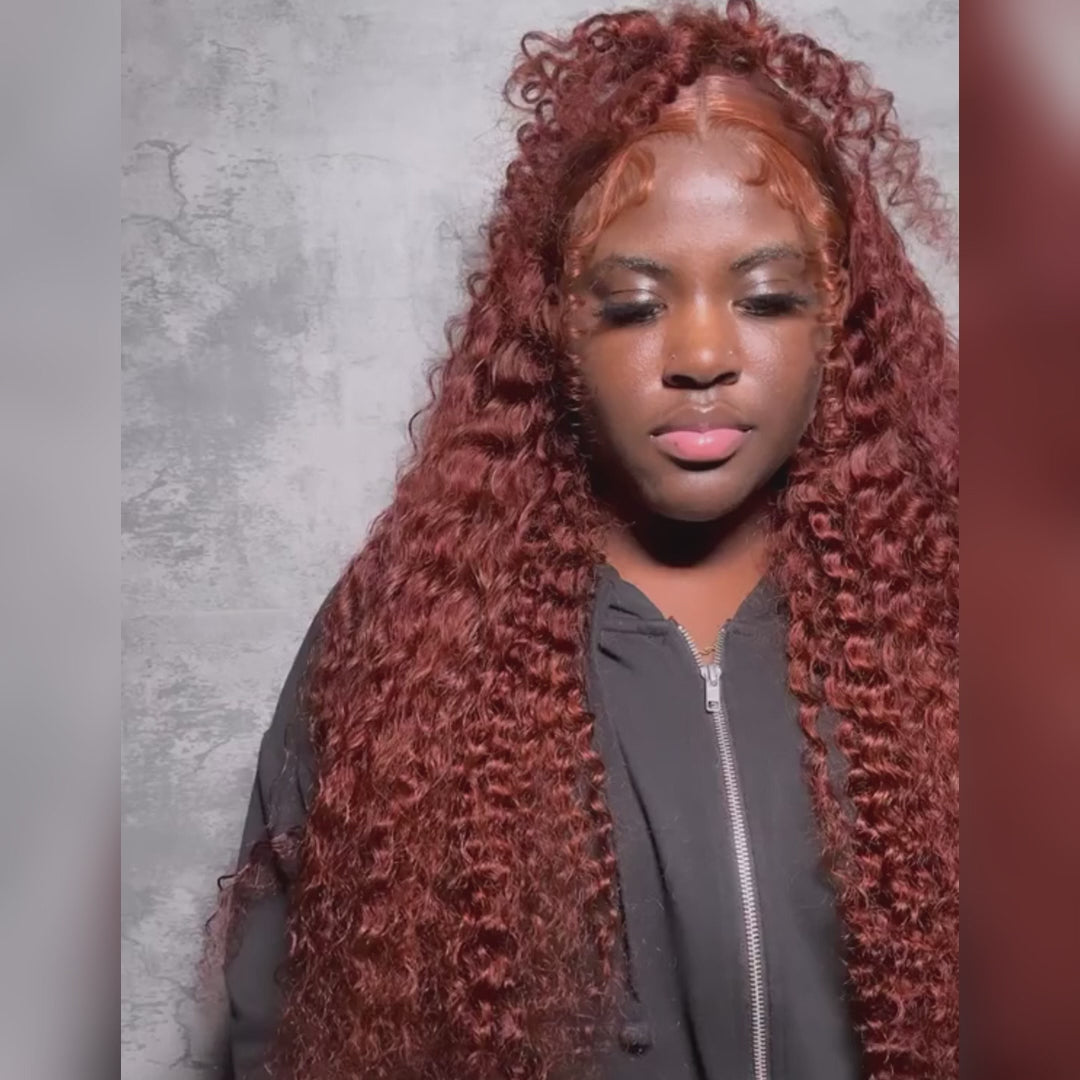 4x4/13x4 Reddish Brown #33 Deep Wave Lace Frontal Human Hair Wigs For Women-Zlike