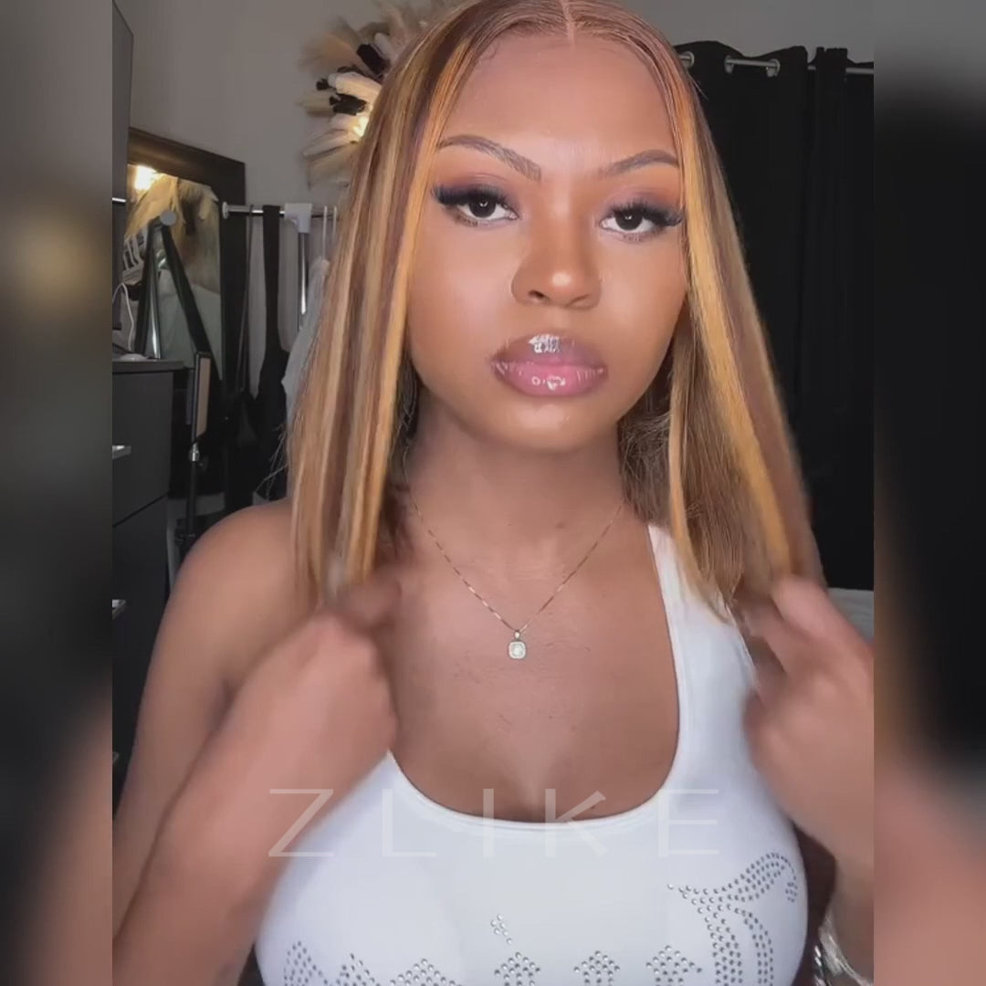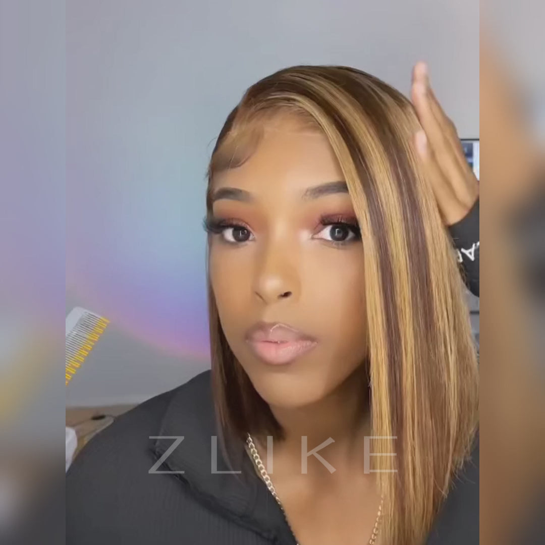 Short Highlight Straight Bob Wig Human Hair Lace Wigs Natural Hairline For Women
