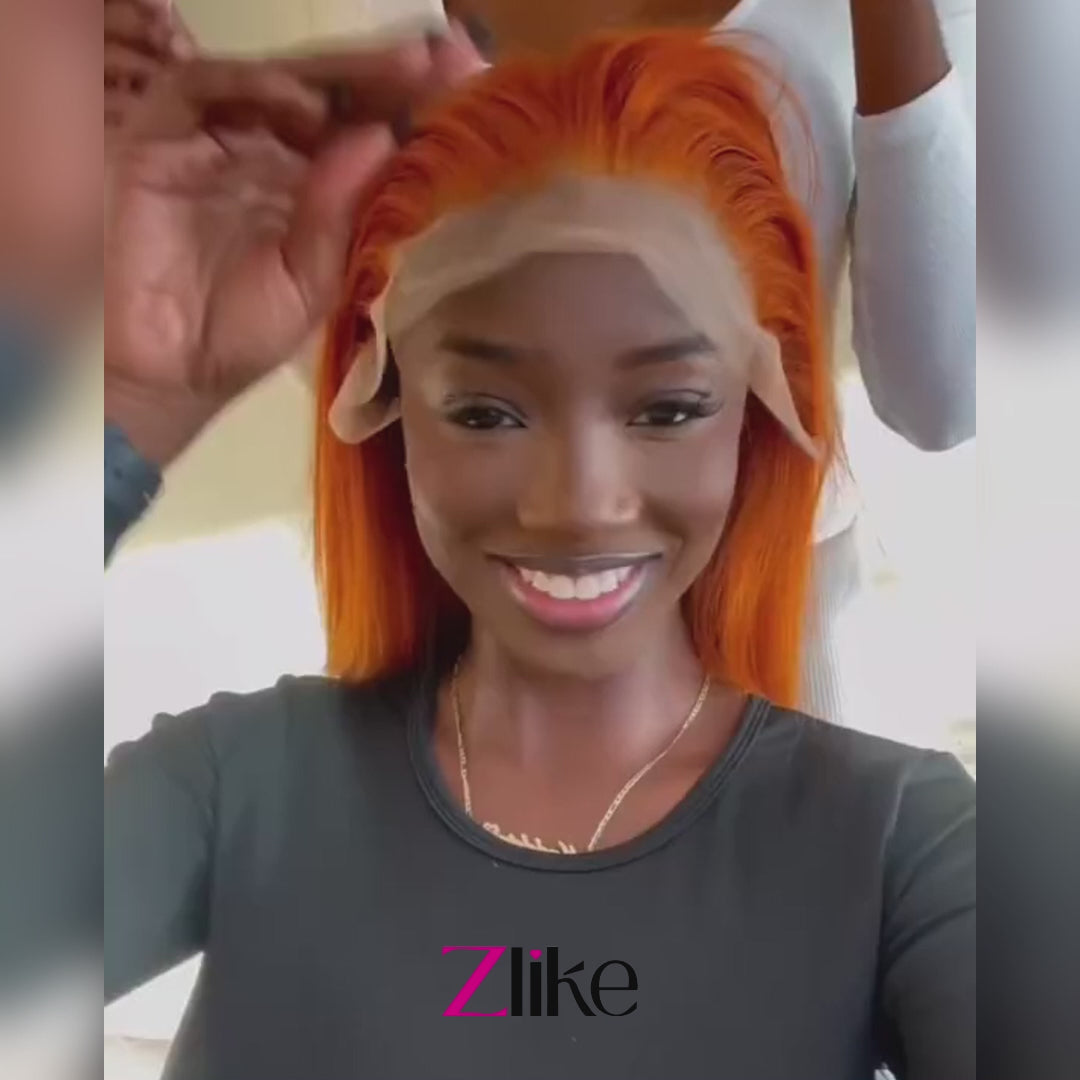 Short Orange Straight Bob Wig Human Hair Lace Front Bob Wigs-Zlike