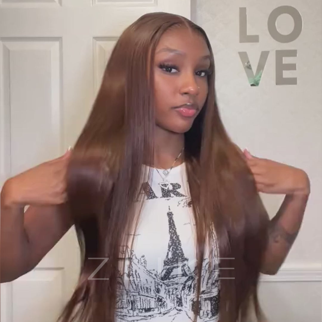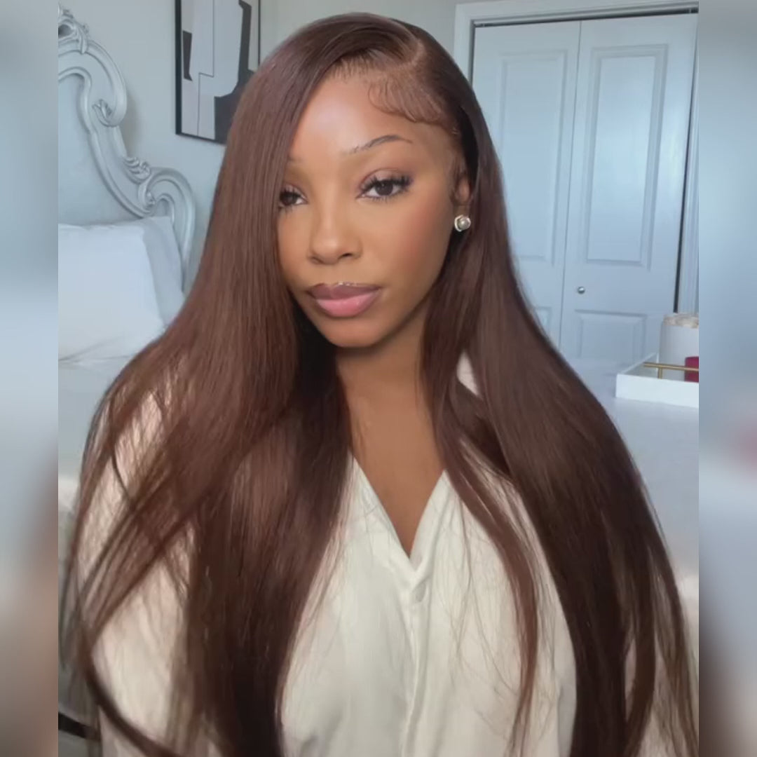 #4 Chocolate Brown Pre Plucked Silky Straight Transparent Lace Front Human Hair Wigs With Baby Hair