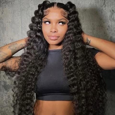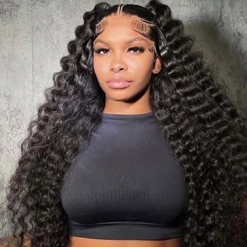 Super Bouncy Deep Wave Lace Wig Bleached Knots Human Hair 250% Density Transparent Lace Closure Wigs