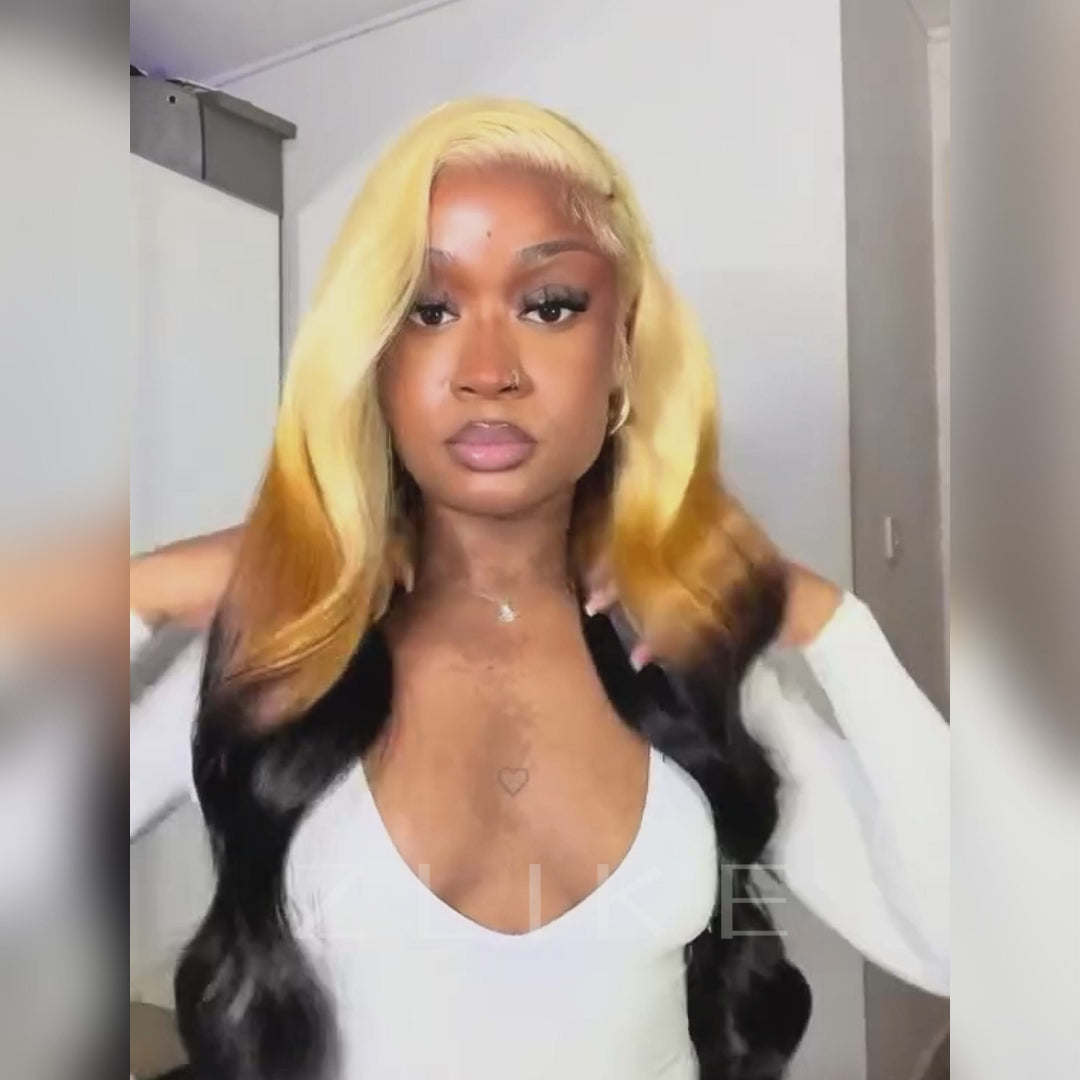 Blonde Ombre Lace Front Wig 613 Blonde Brown Human Hair Wigs Pre Plucked