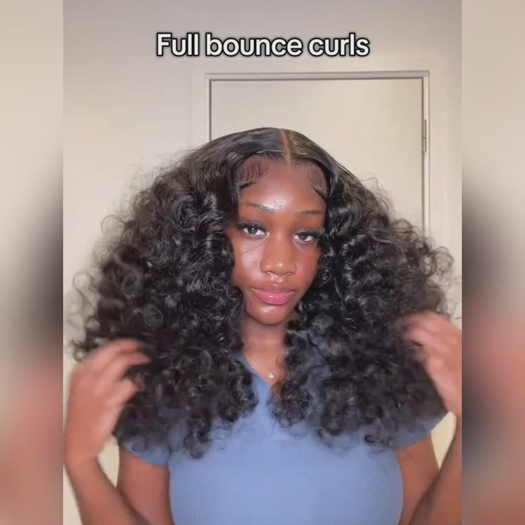 Zlike 300% Density Bouncy Loose Curl Glueless 7x5 Closure Pre-Cut Lace Curly Wigs Human Hair Breathable Cap Wigs For Women