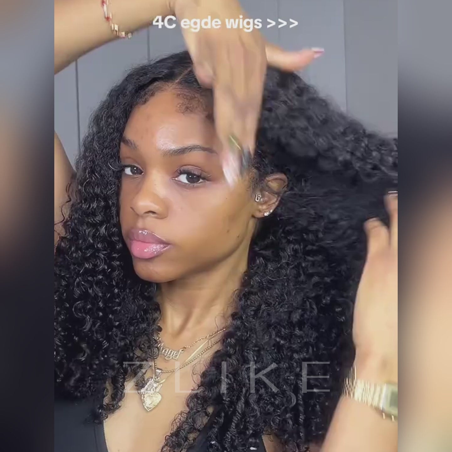 Zlike 4C Curly Edge Pre Cut Lace Closure Wigs 250% Density Human Hair Glueless Wigs