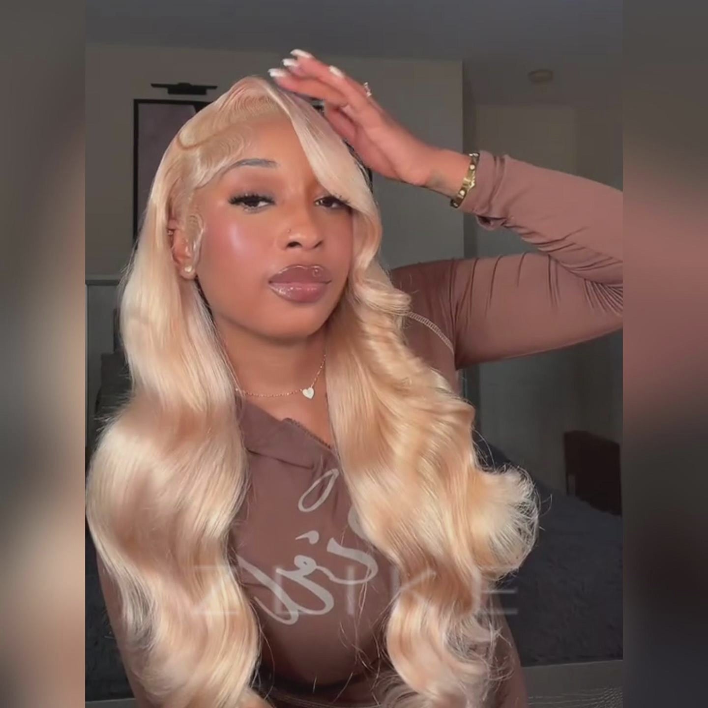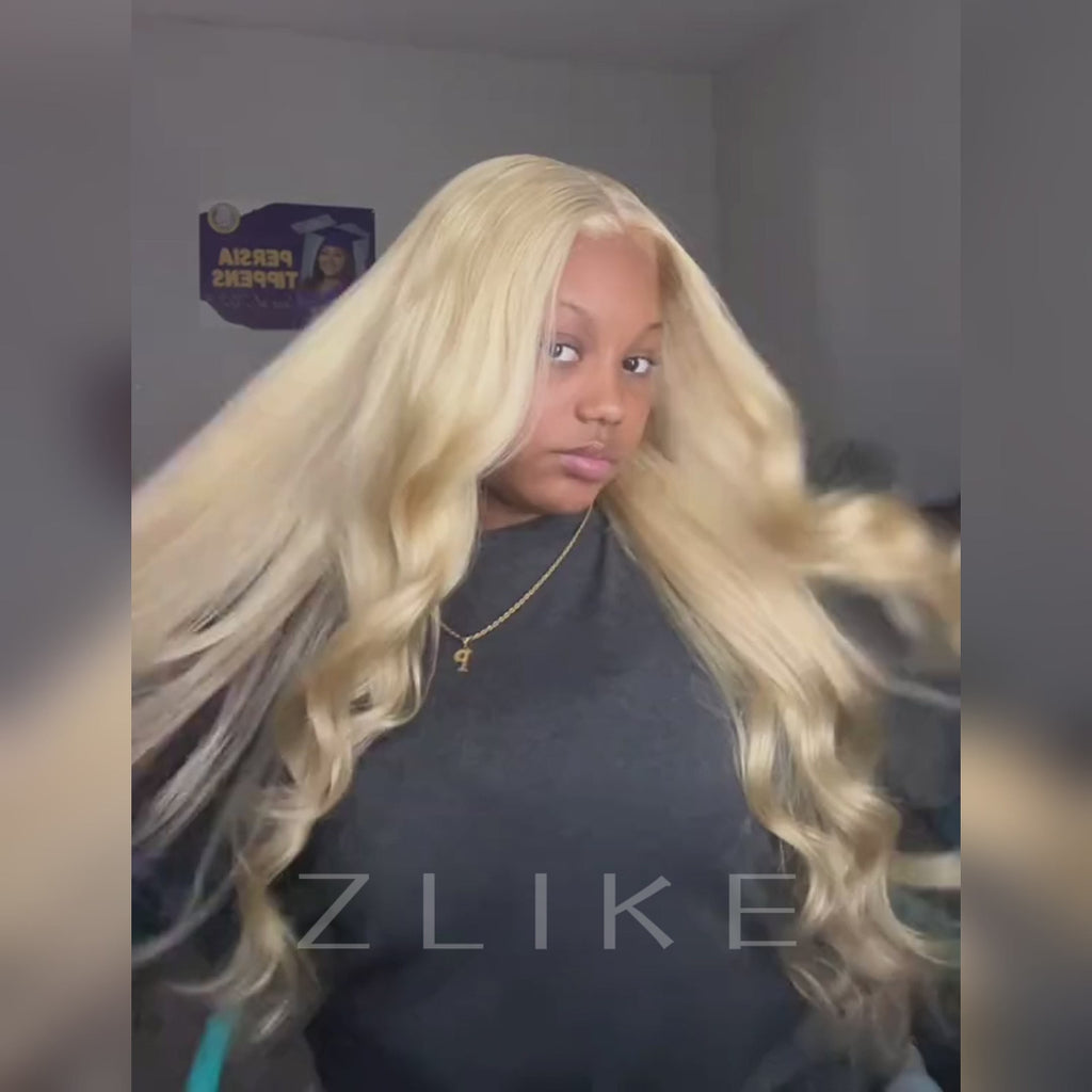 Zlike #613 Blonde Wigs Body Wave Lace Front Wig 300% Density 100% Human Hair Transparent Lace Front Wigs For Women