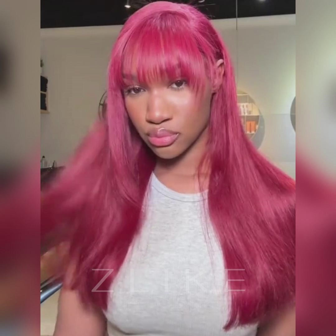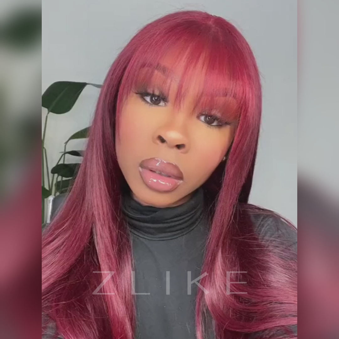 Zlike 99J Straight Wig With Bangs Silky Straight Glueless Human Hair Wigs Natural Hairline